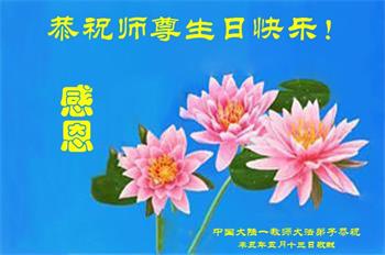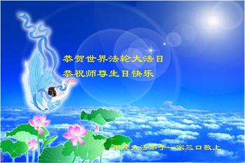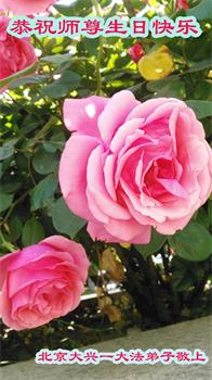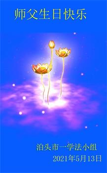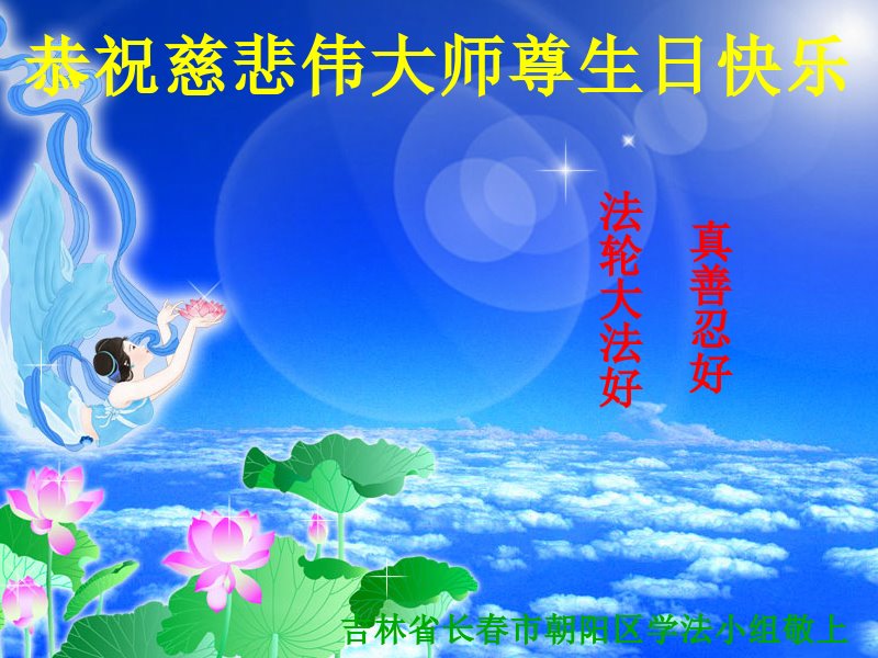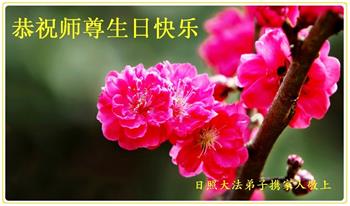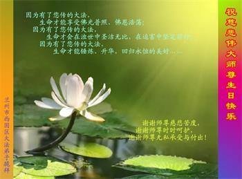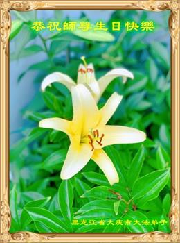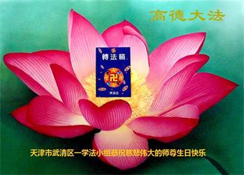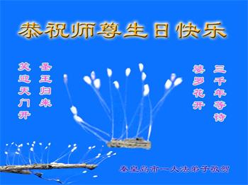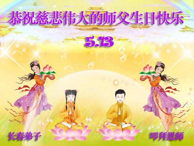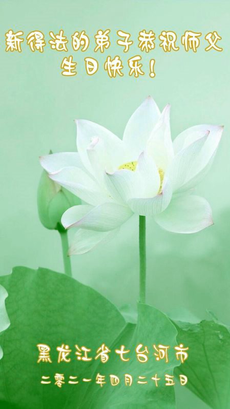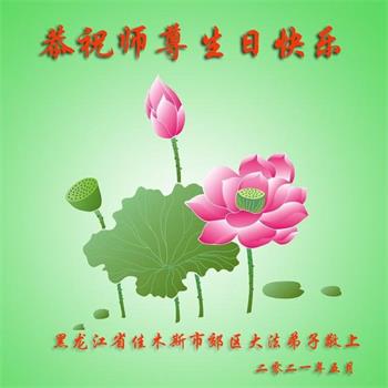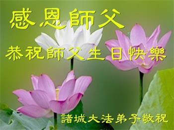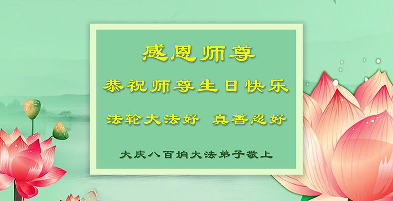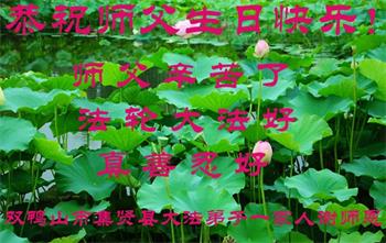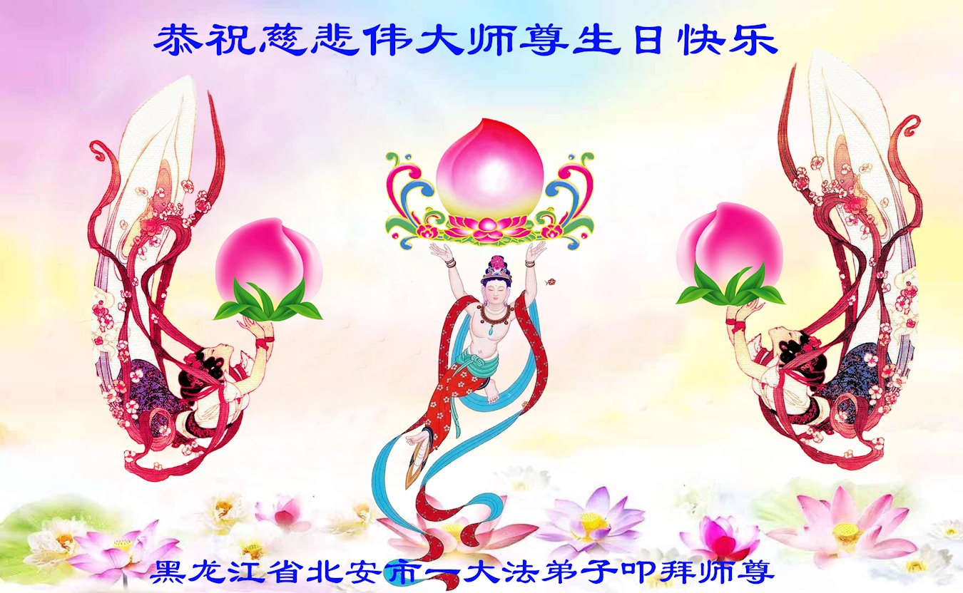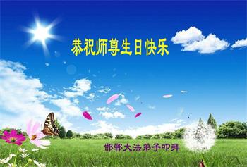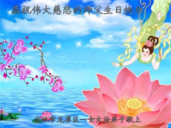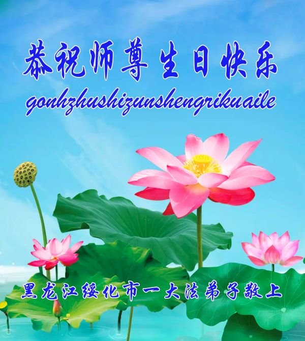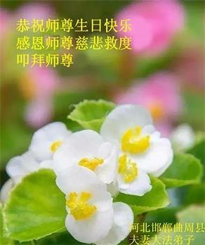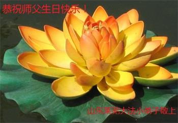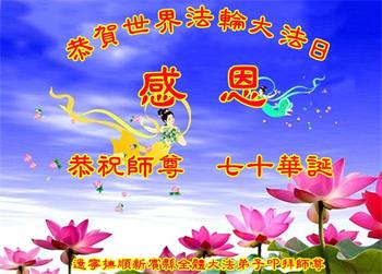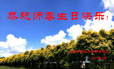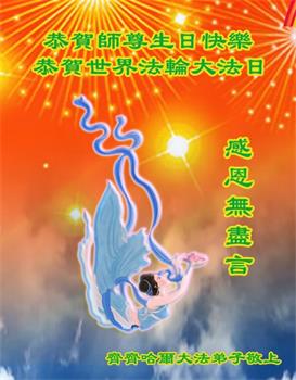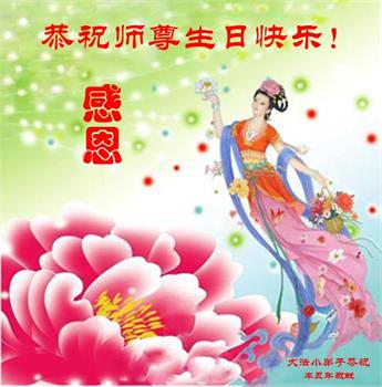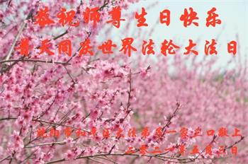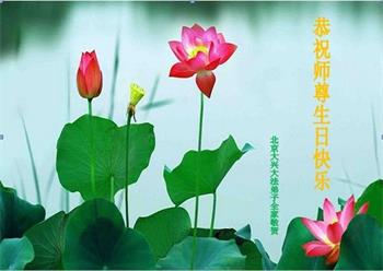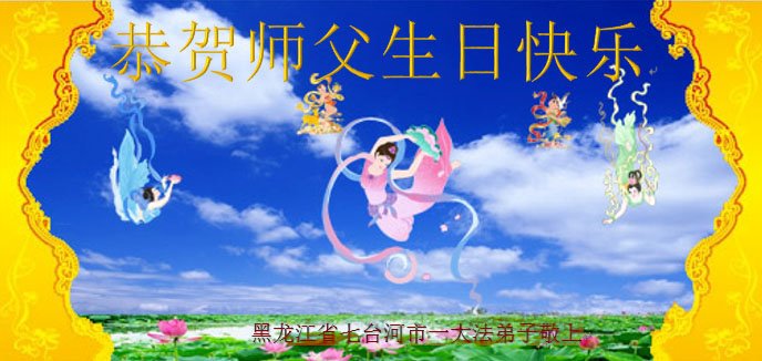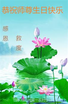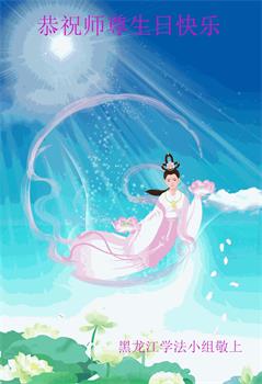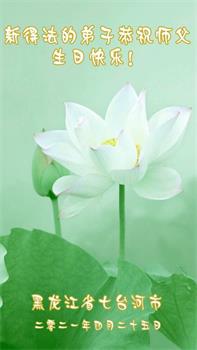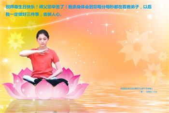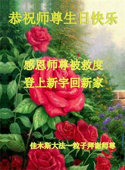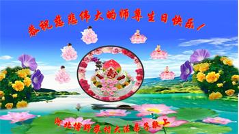 我是一个得法很晚的新学员。新学员祝师尊生日快乐!请师尊放心,我会用我很虔诚的一颗心把三件事做好,我会好好修炼,成为师尊的真修弟子,跟师尊回到我真正的家园。