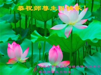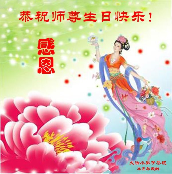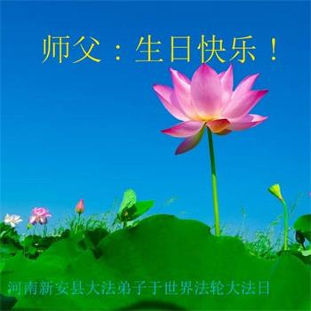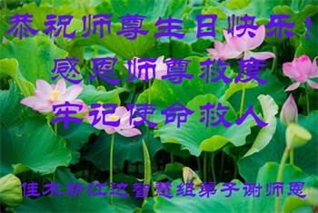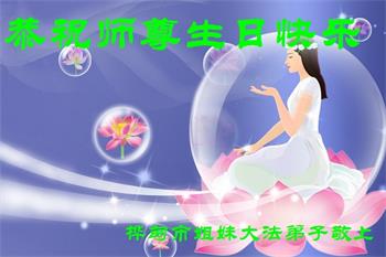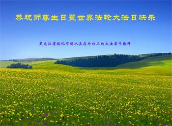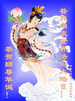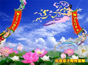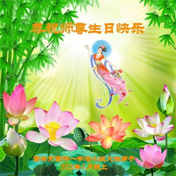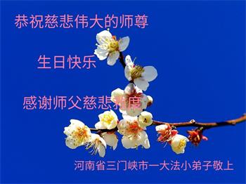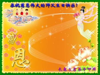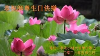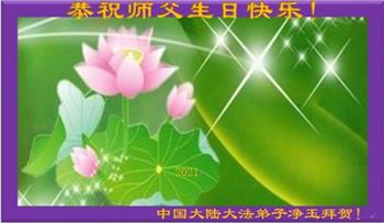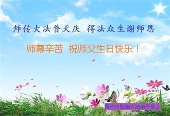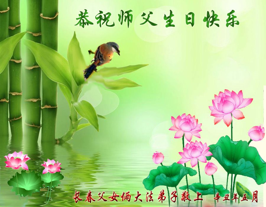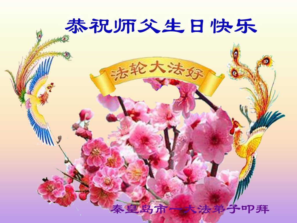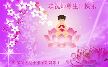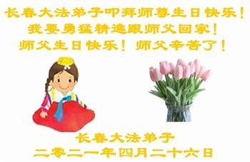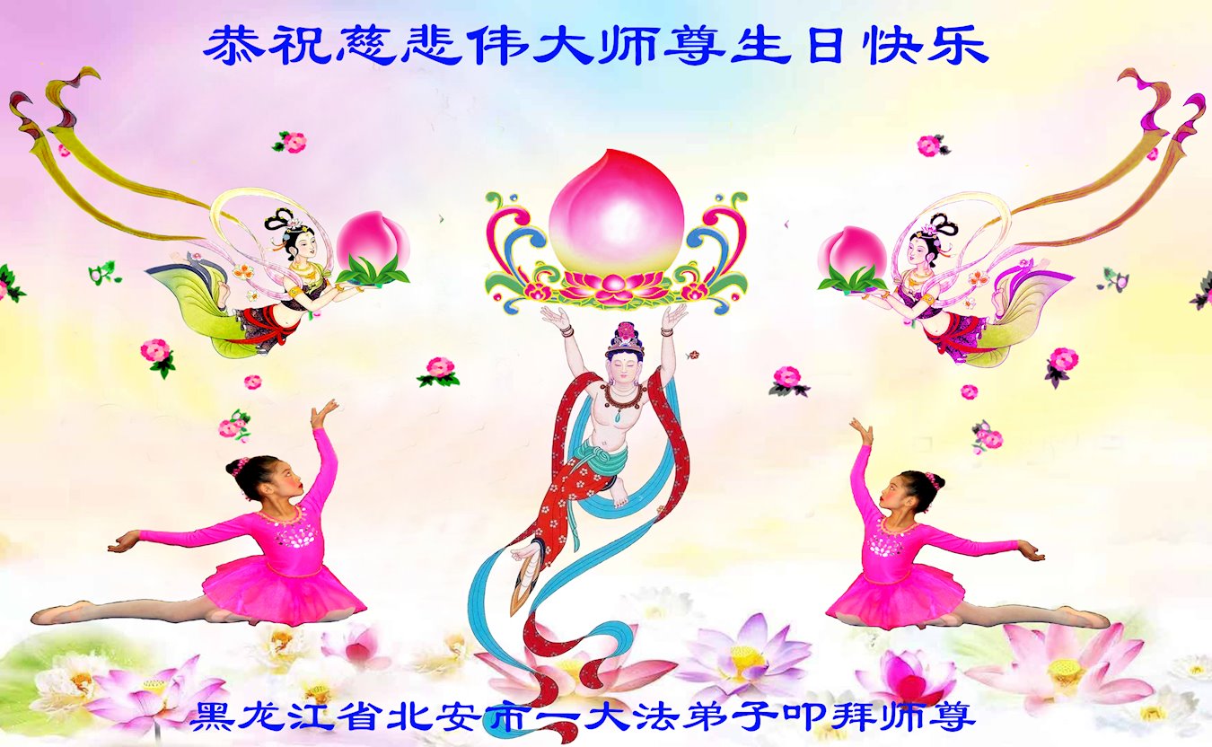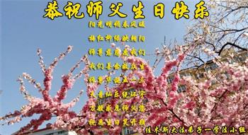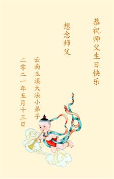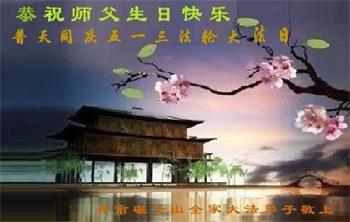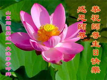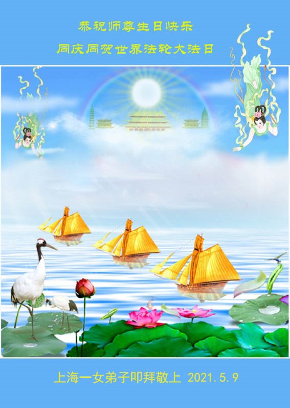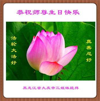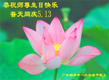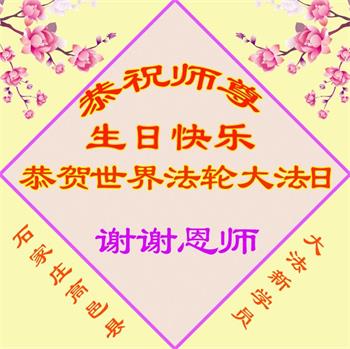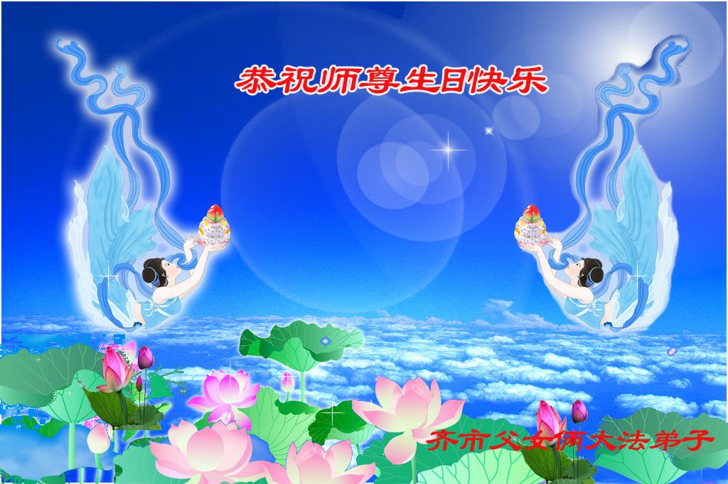 我是一个得法很晚的新学员。新学员祝师尊生日快乐!请师尊放心,我会用我很虔诚的一颗心把三件事做好,我会好好修炼,成为师尊的真修弟子,跟师尊回到我真正的家园。