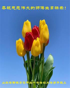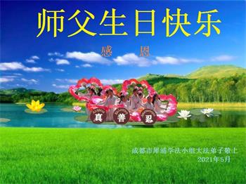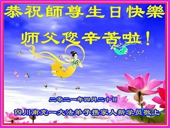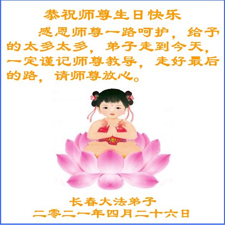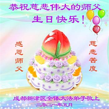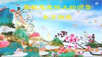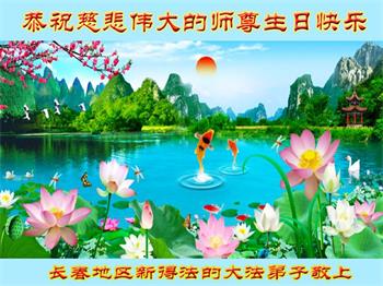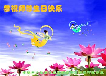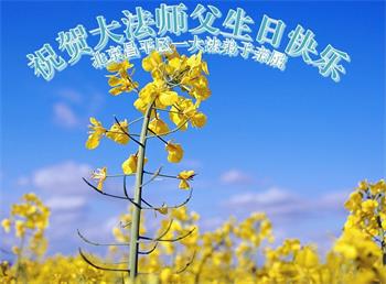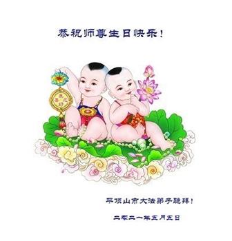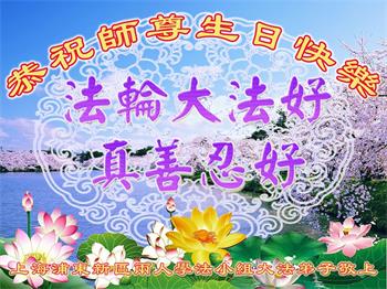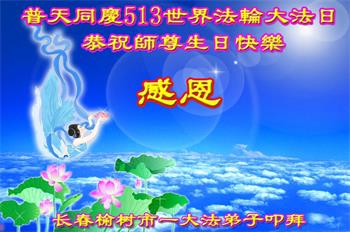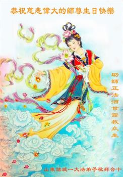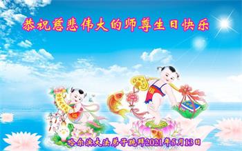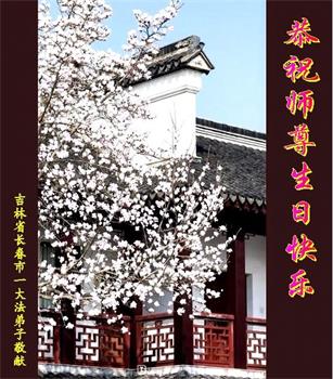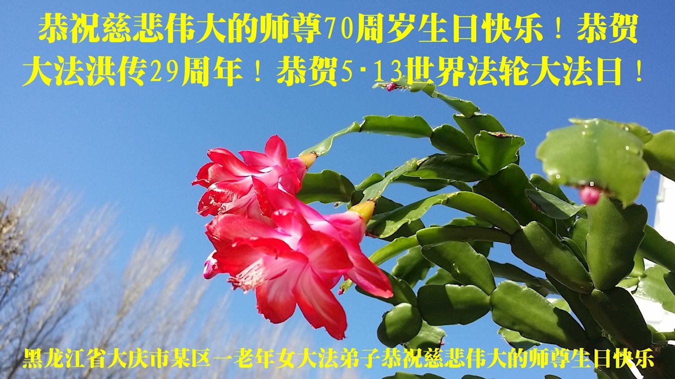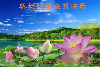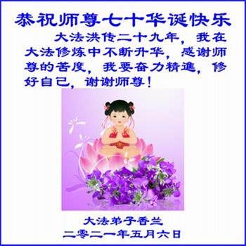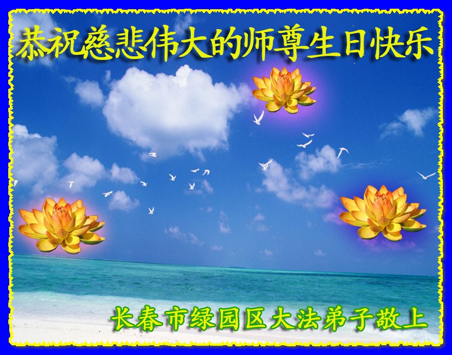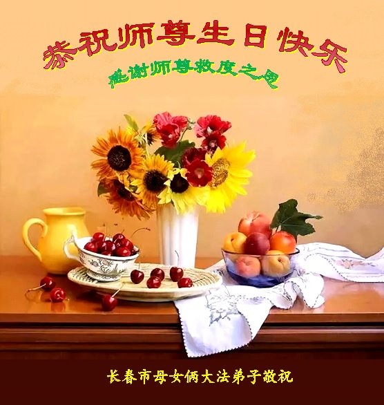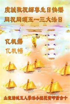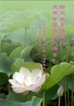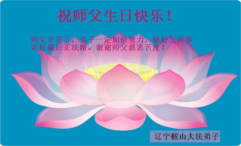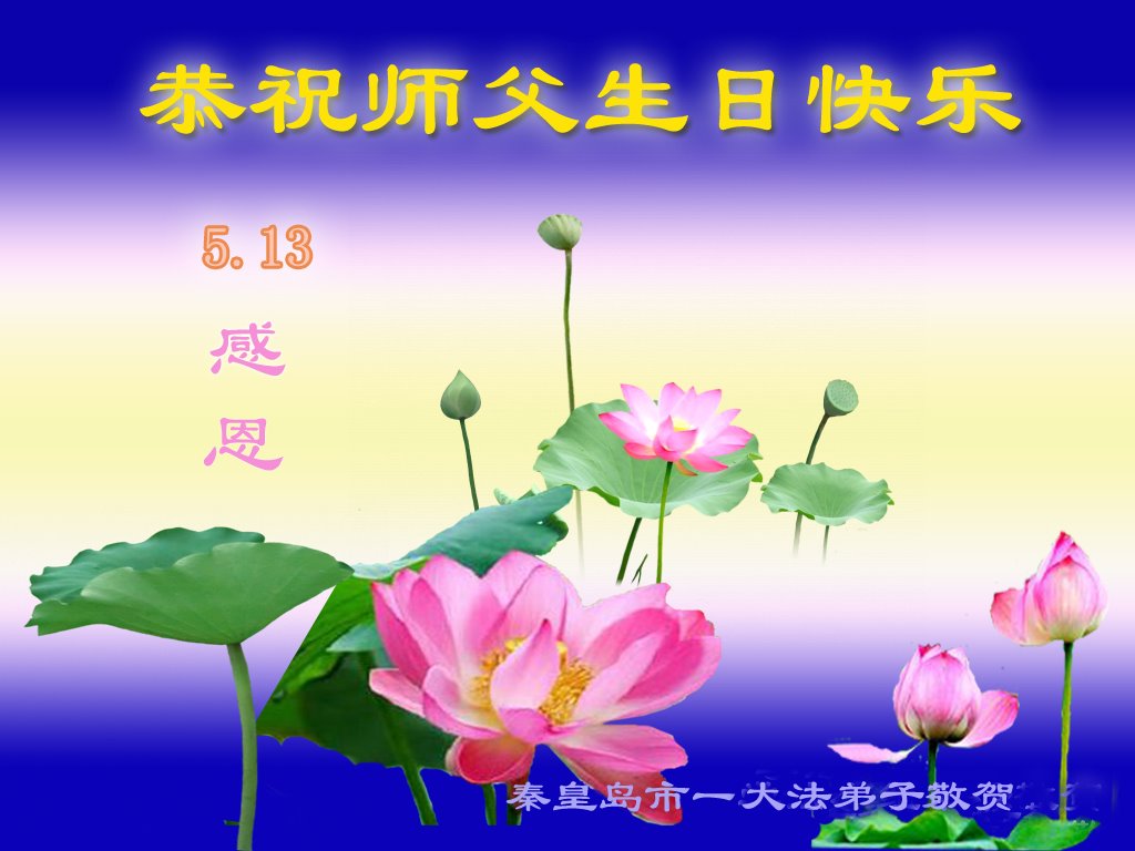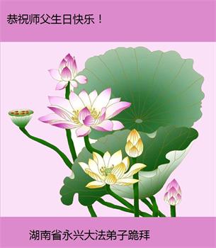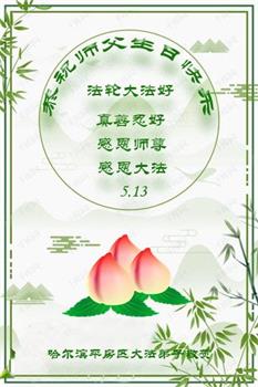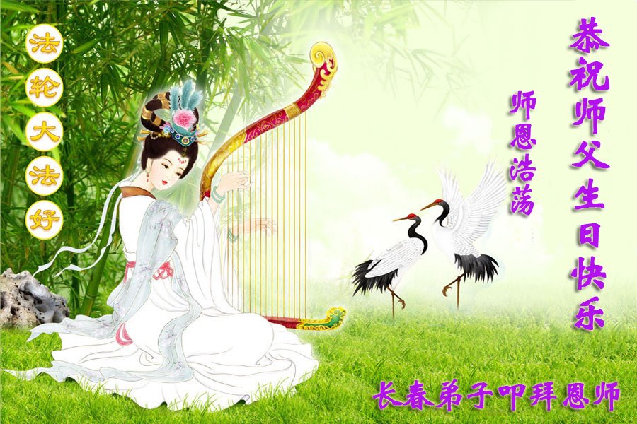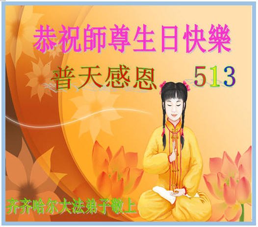 我是一个得法很晚的新学员。新学员祝师尊生日快乐!请师尊放心,我会用我很虔诚的一颗心把三件事做好,我会好好修炼,成为师尊的真修弟子,跟师尊回到我真正的家园。