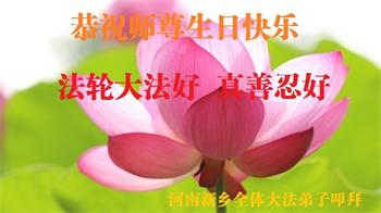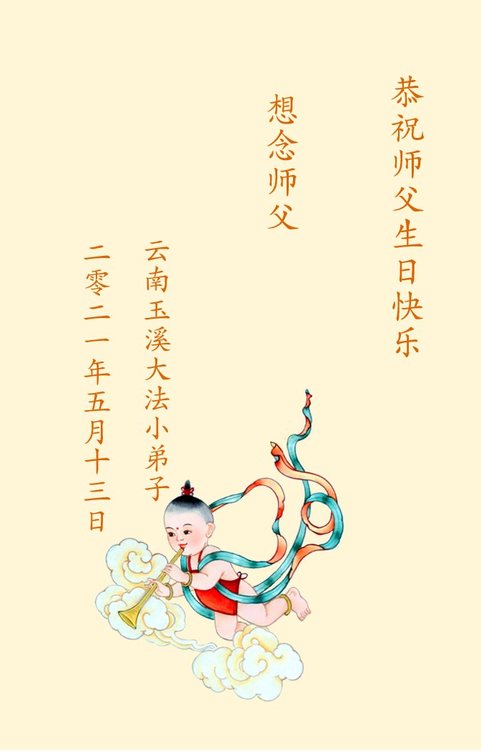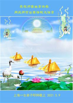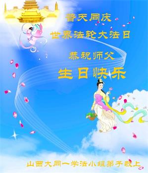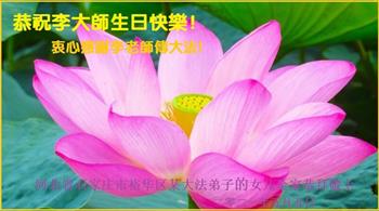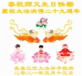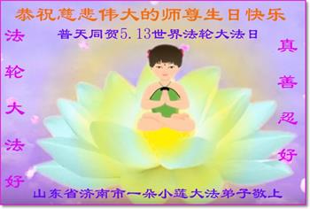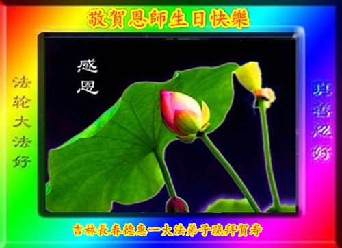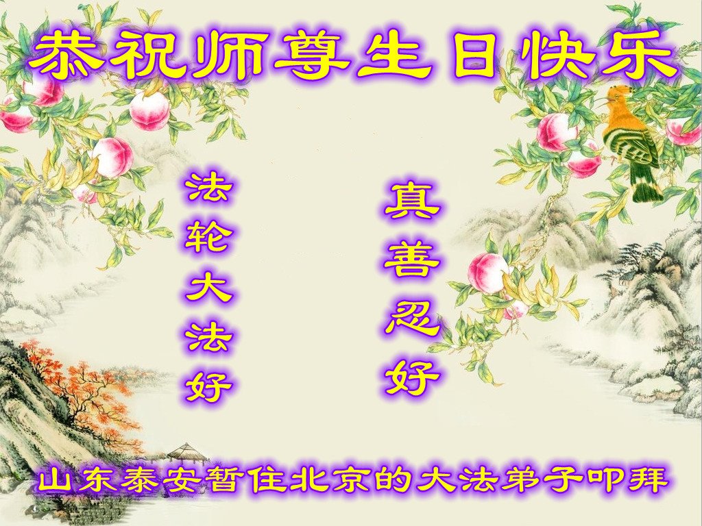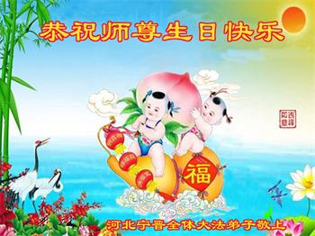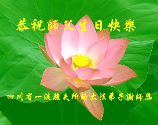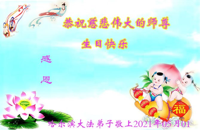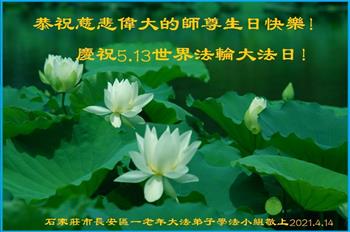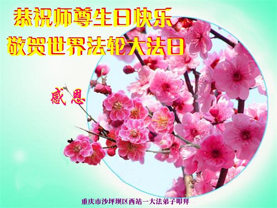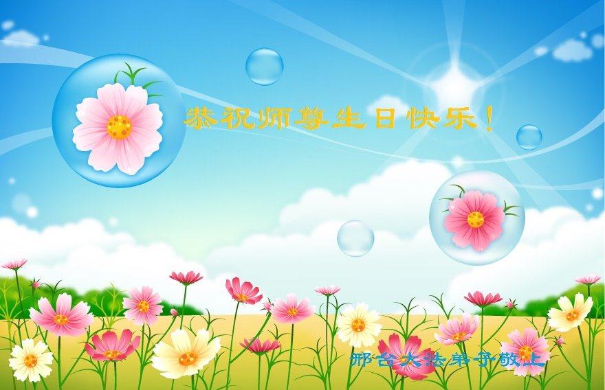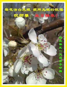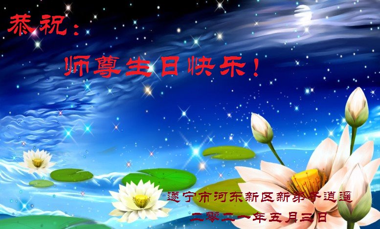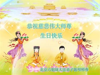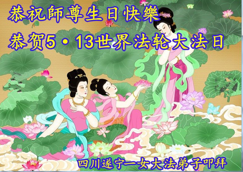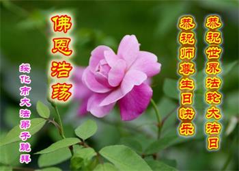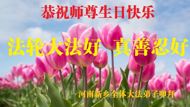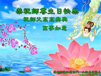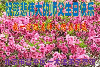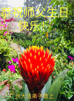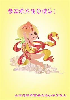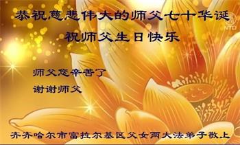 我是一个得法很晚的新学员。新学员祝师尊生日快乐!请师尊放心,我会用我很虔诚的一颗心把三件事做好,我会好好修炼,成为师尊的真修弟子,跟师尊回到我真正的家园。