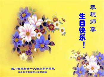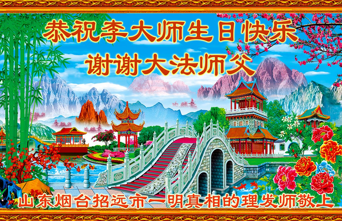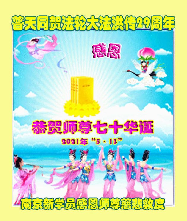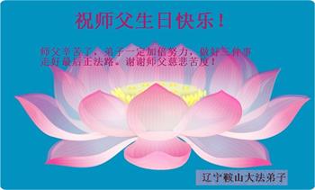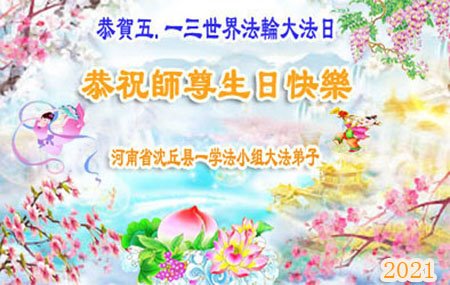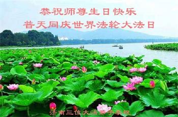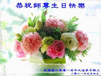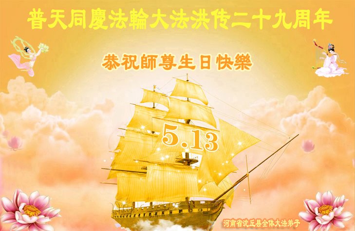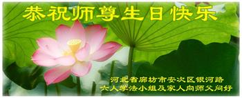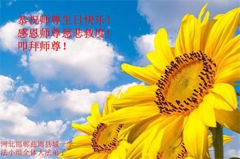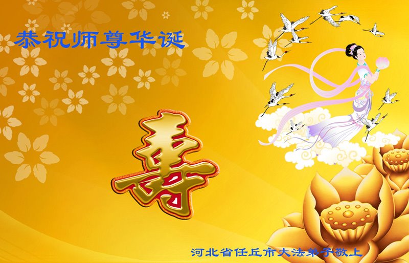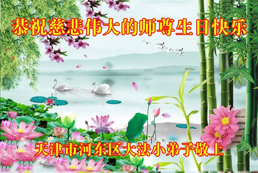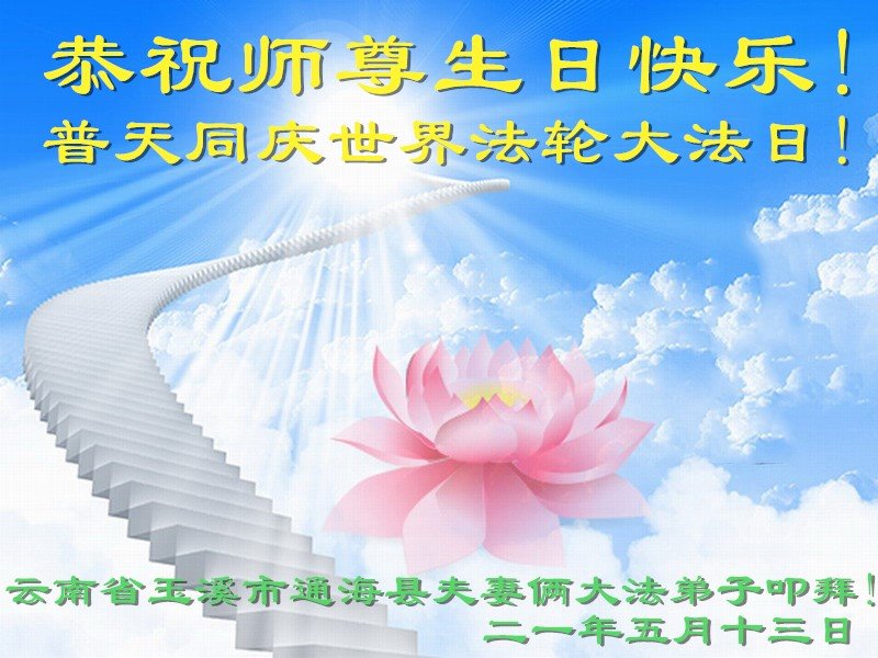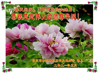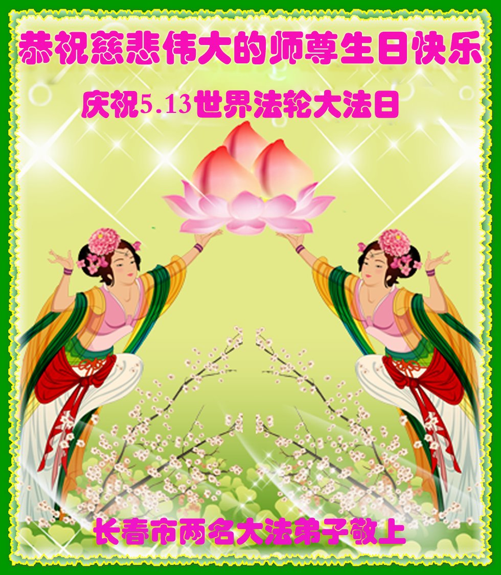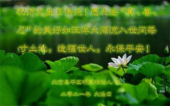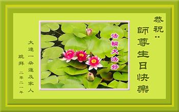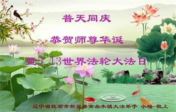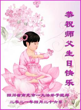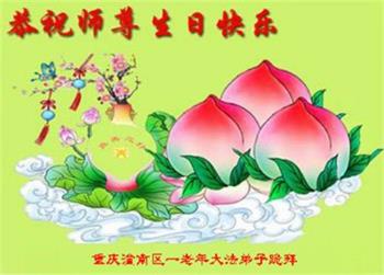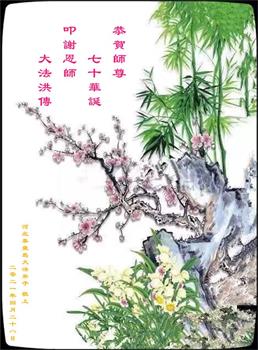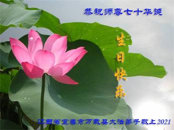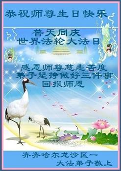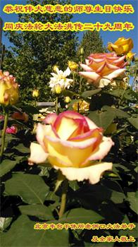 我是一个得法很晚的新学员。新学员祝师尊生日快乐!请师尊放心,我会用我很虔诚的一颗心把三件事做好,我会好好修炼,成为师尊的真修弟子,跟师尊回到我真正的家园。