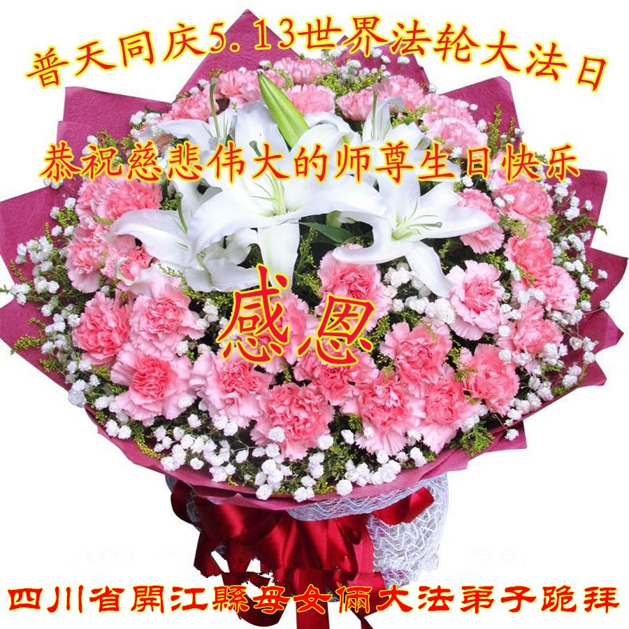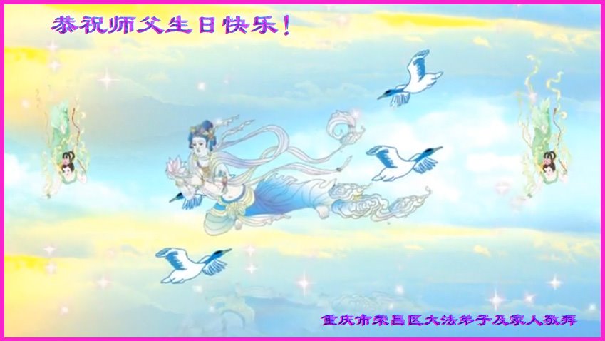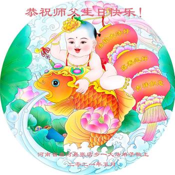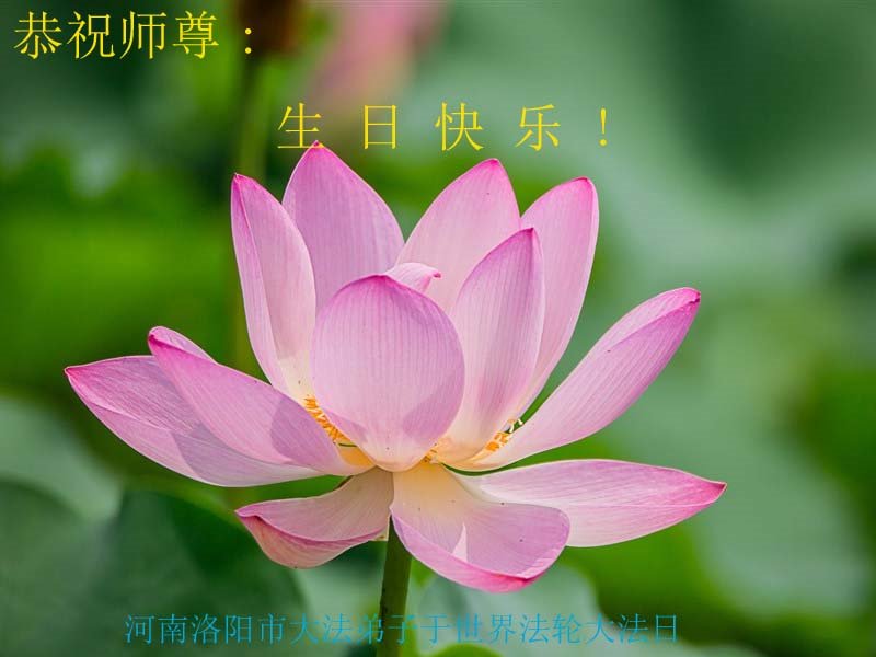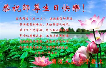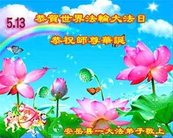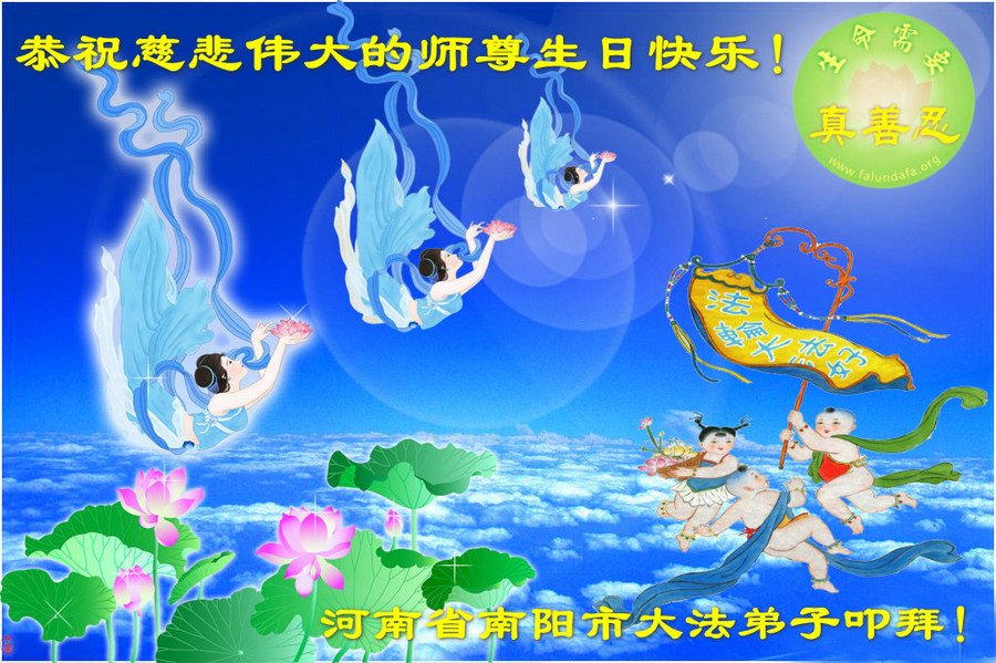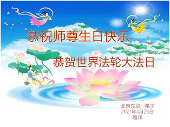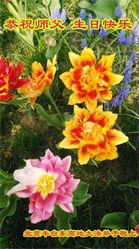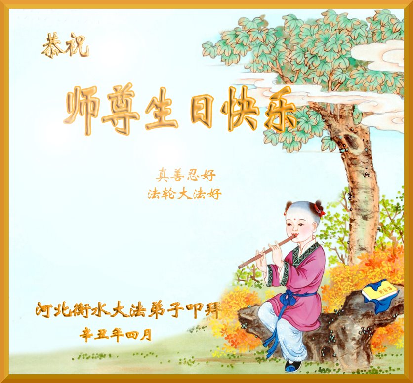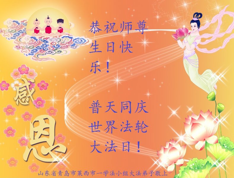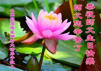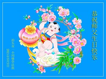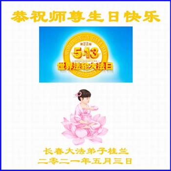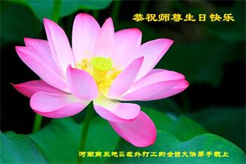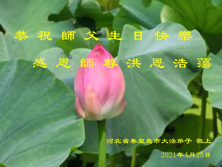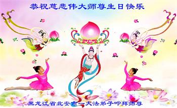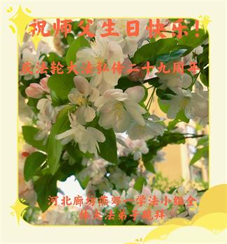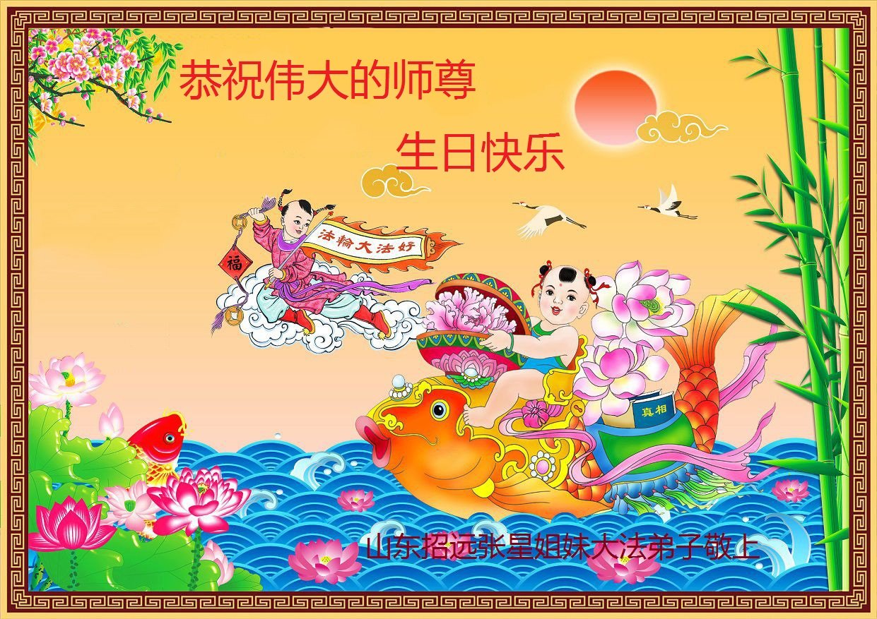 我是一个得法很晚的新学员。新学员祝师尊生日快乐!请师尊放心,我会用我很虔诚的一颗心把三件事做好,我会好好修炼,成为师尊的真修弟子,跟师尊回到我真正的家园。