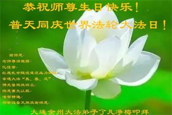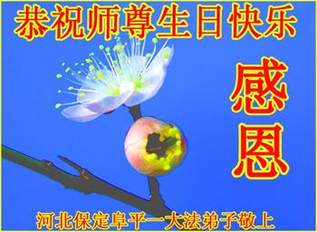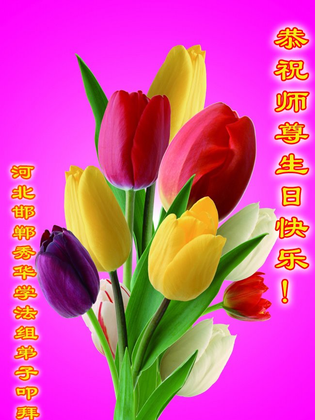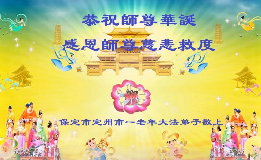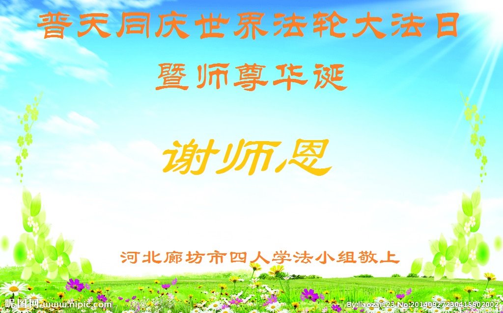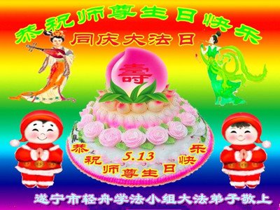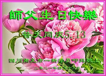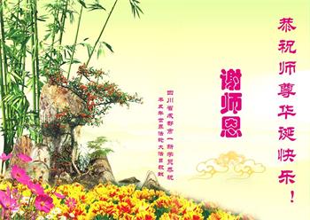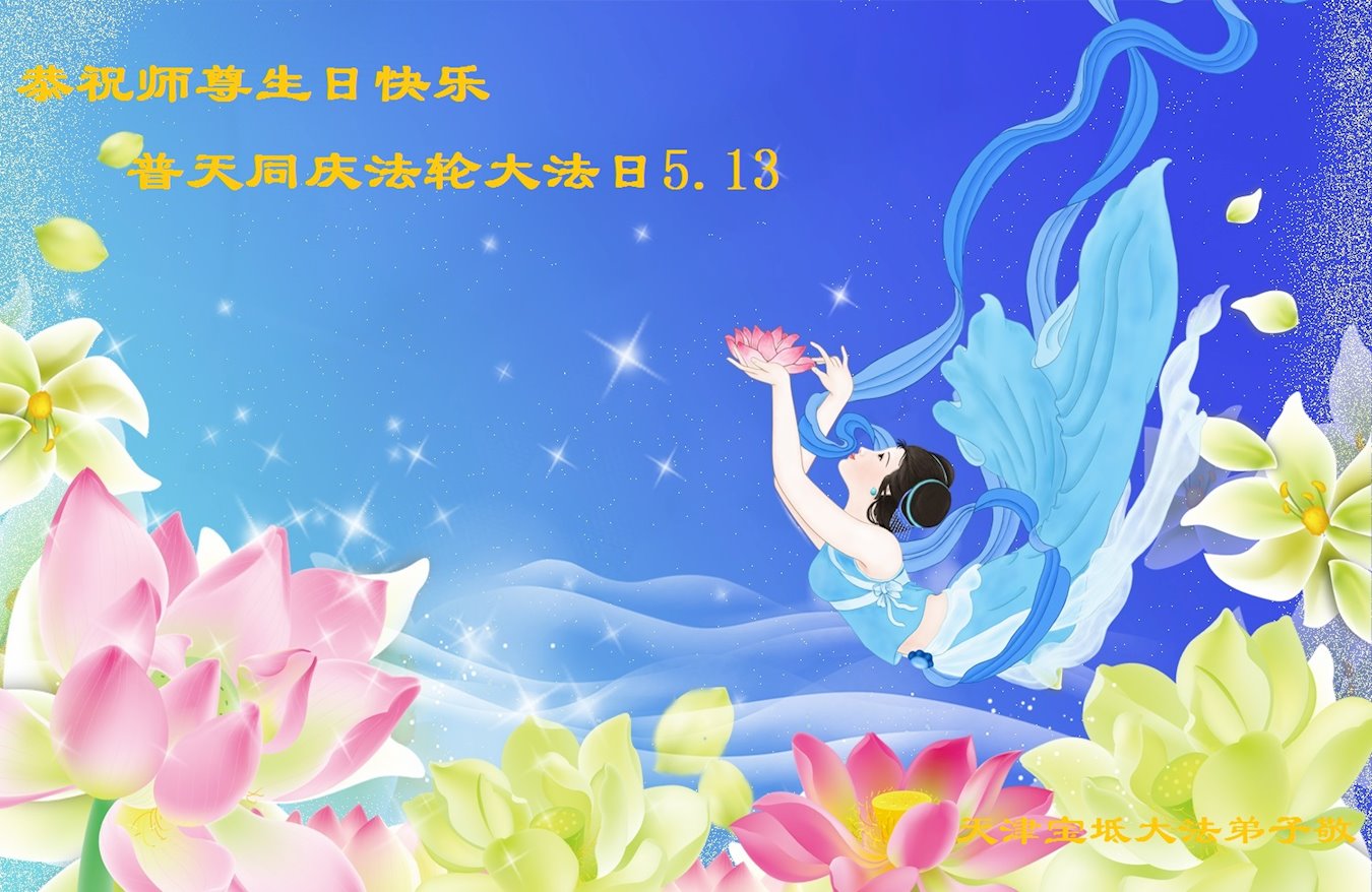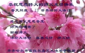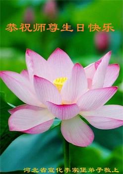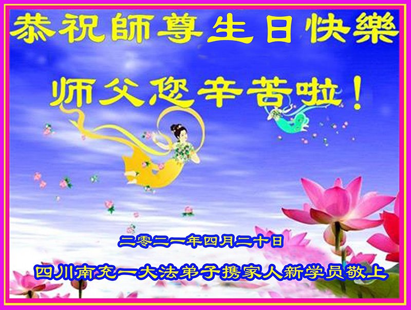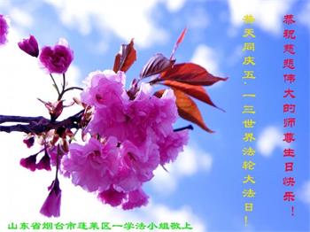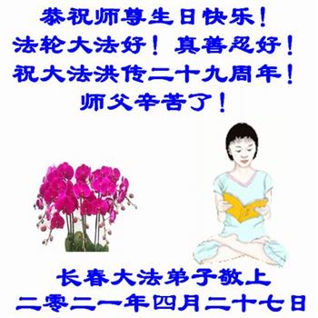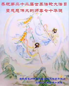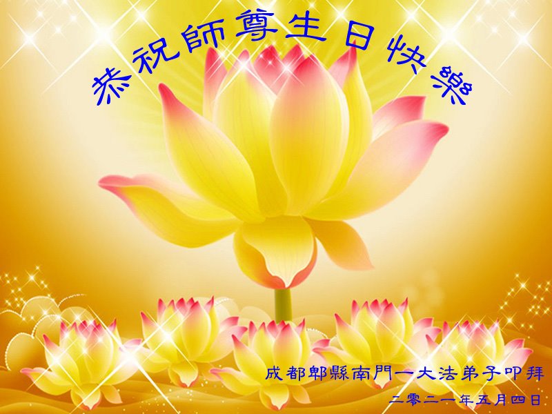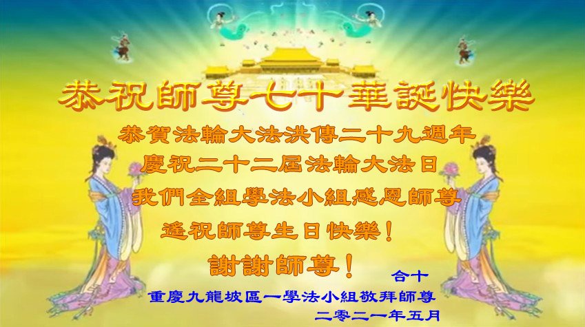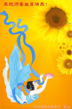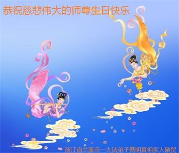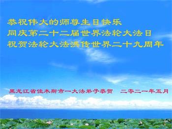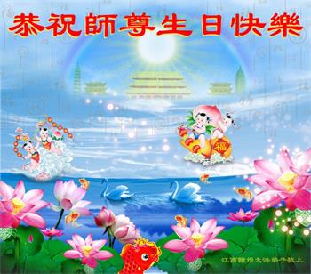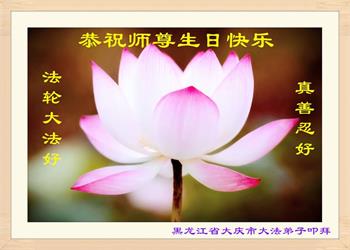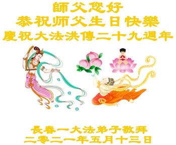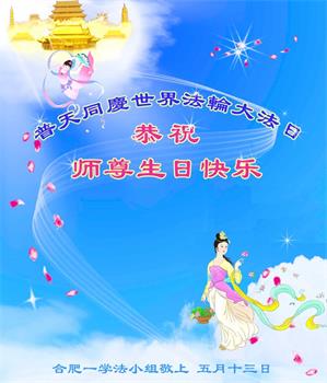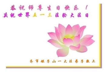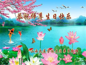 我是一个得法很晚的新学员。新学员祝师尊生日快乐!请师尊放心,我会用我很虔诚的一颗心把三件事做好,我会好好修炼,成为师尊的真修弟子,跟师尊回到我真正的家园。
