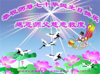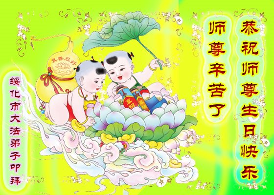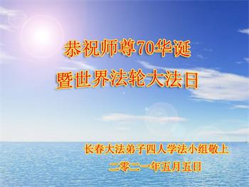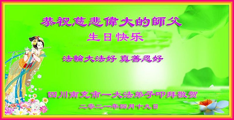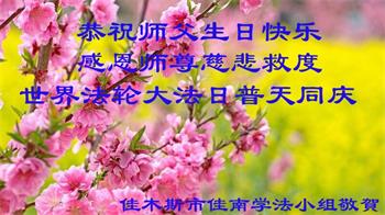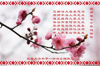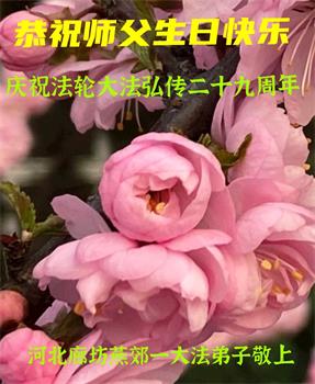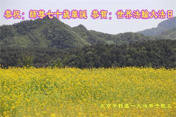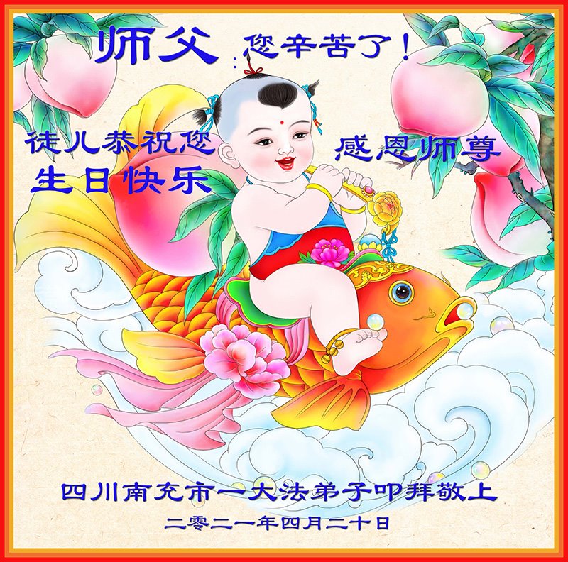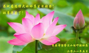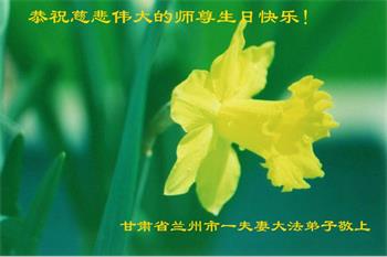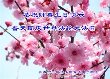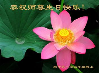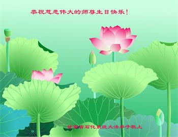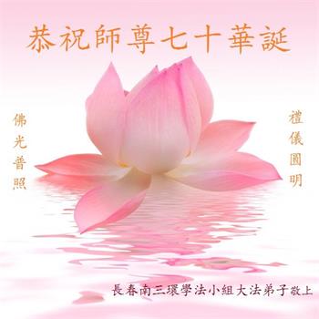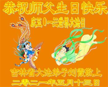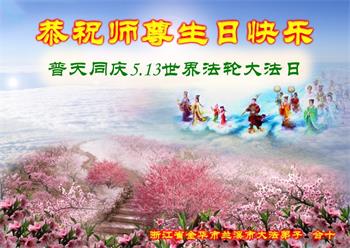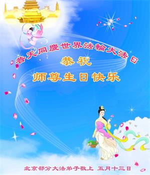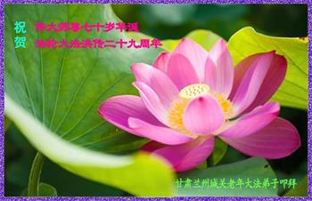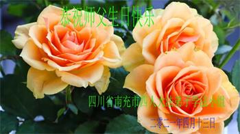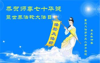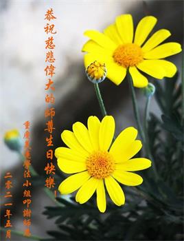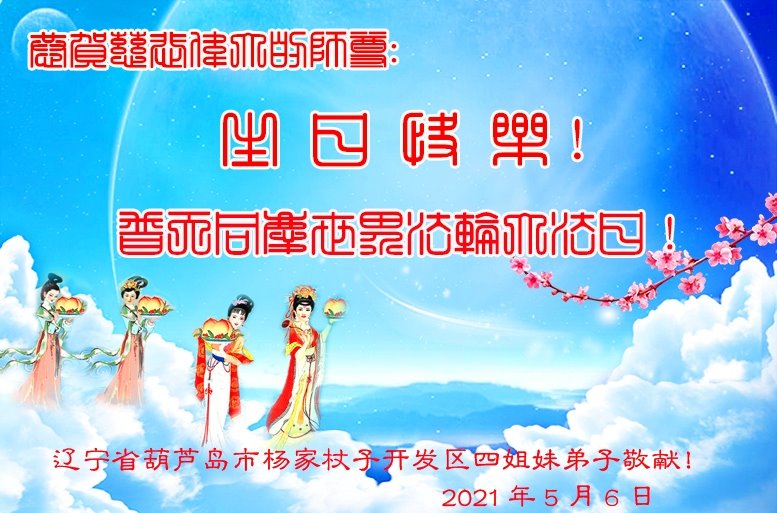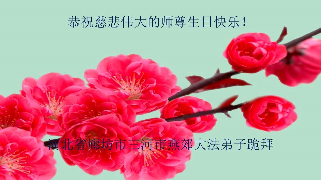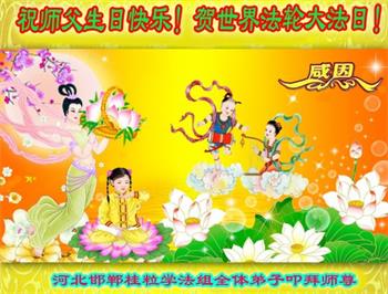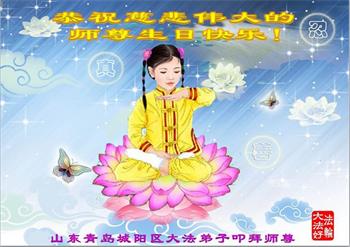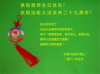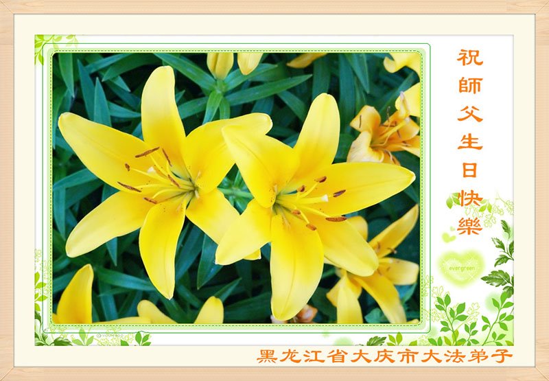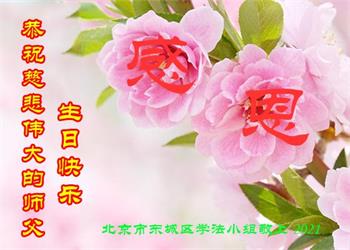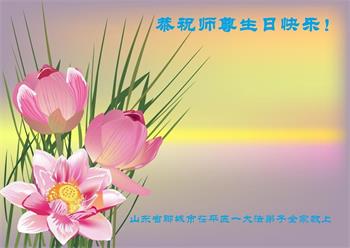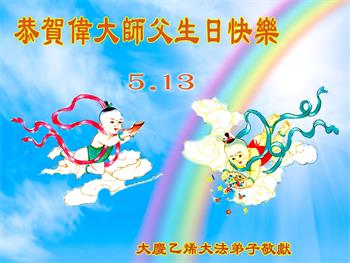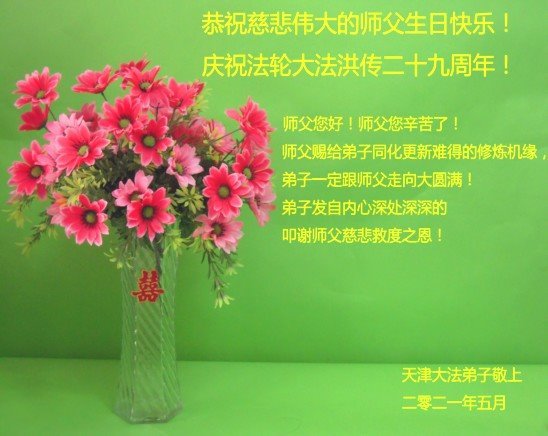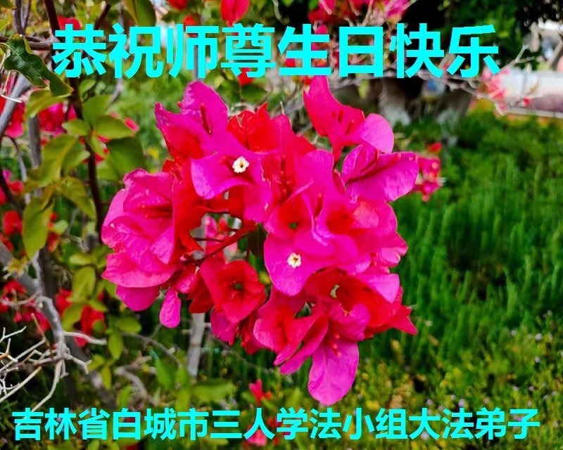 我是一个得法很晚的新学员。新学员祝师尊生日快乐!请师尊放心,我会用我很虔诚的一颗心把三件事做好,我会好好修炼,成为师尊的真修弟子,跟师尊回到我真正的家园。