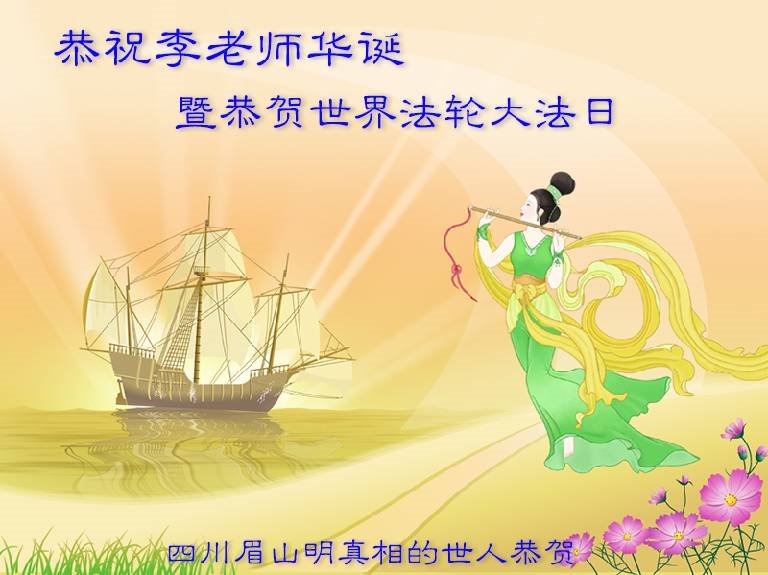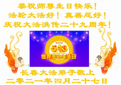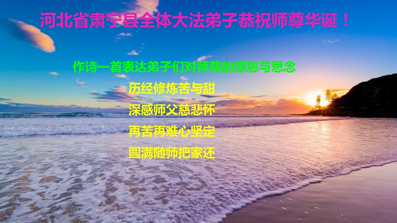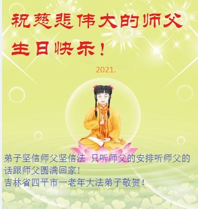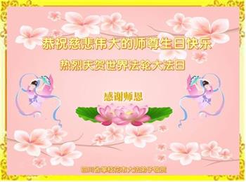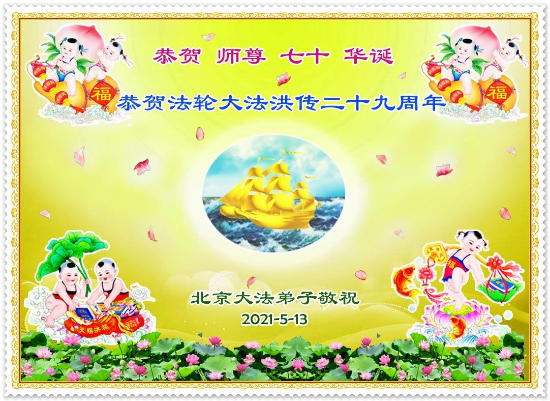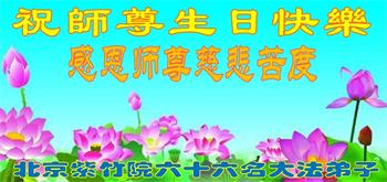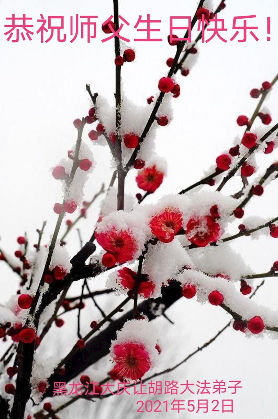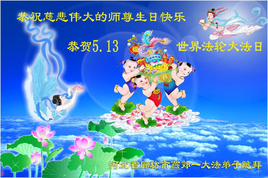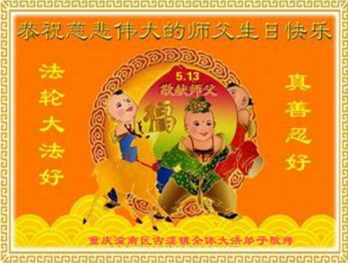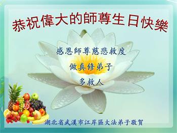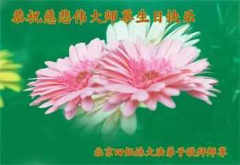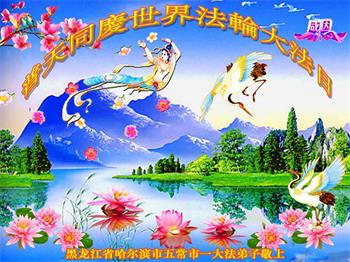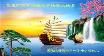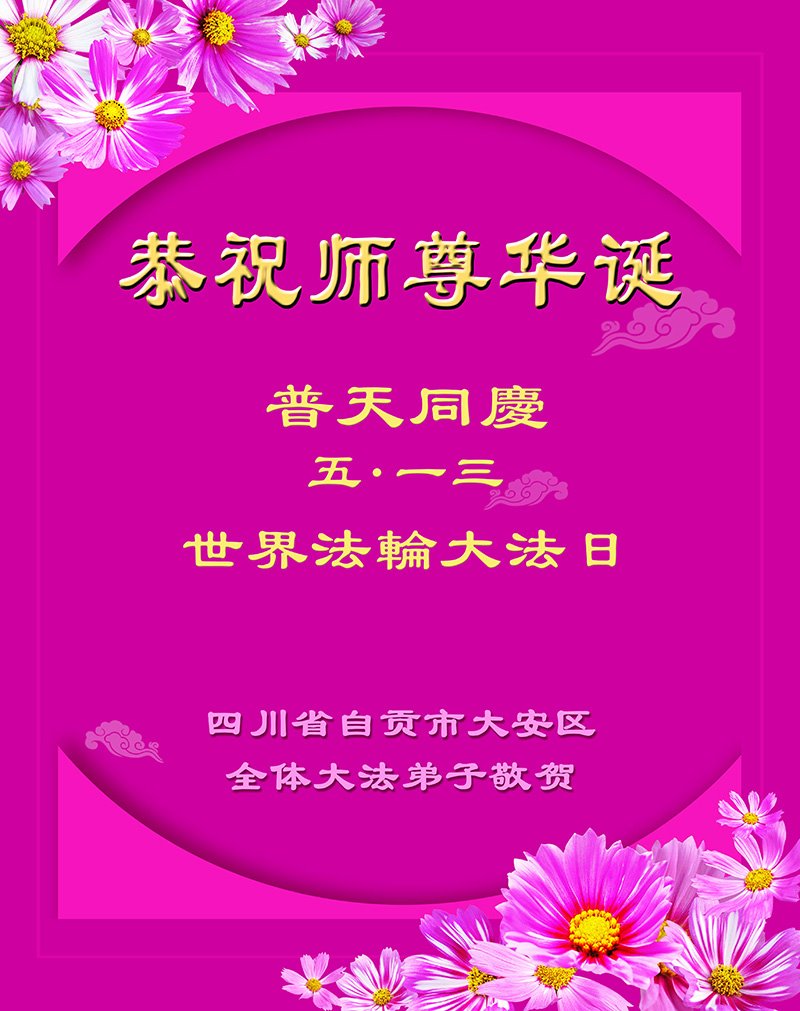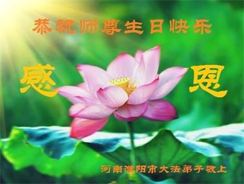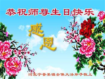 我是一个得法很晚的新学员。新学员祝师尊生日快乐!请师尊放心,我会用我很虔诚的一颗心把三件事做好,我会好好修炼,成为师尊的真修弟子,跟师尊回到我真正的家园。
