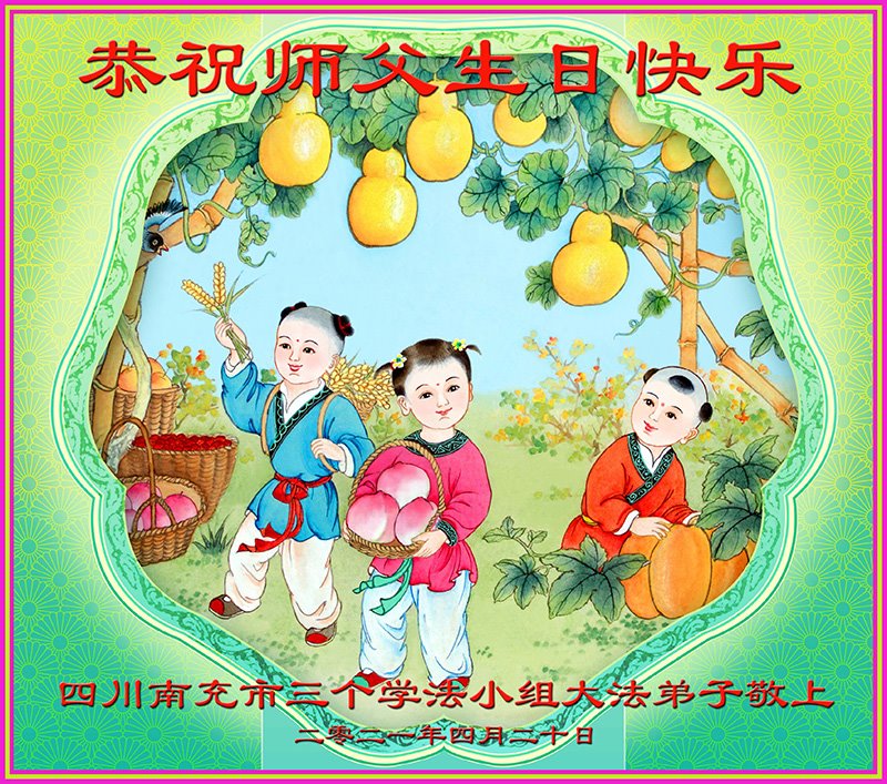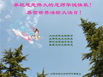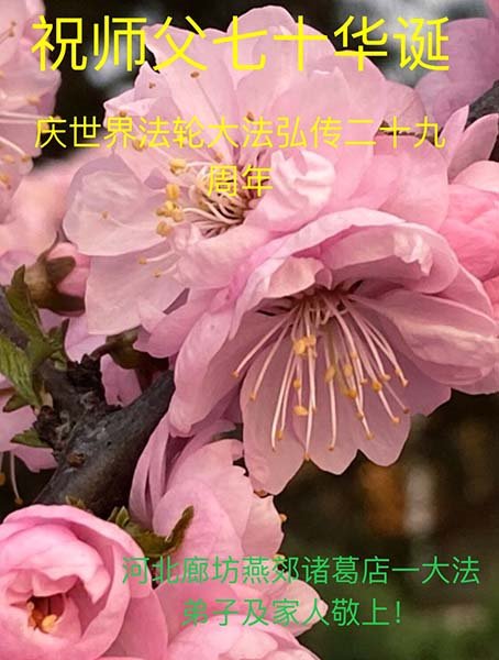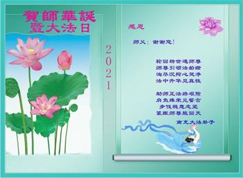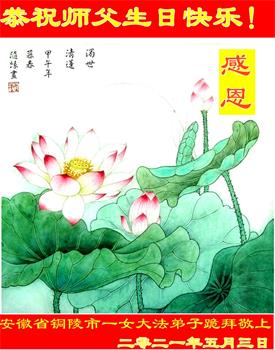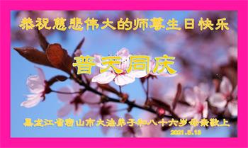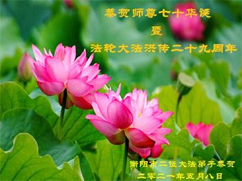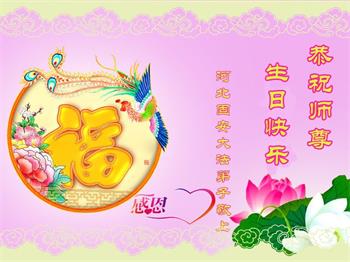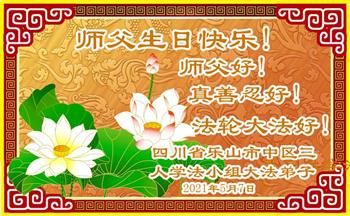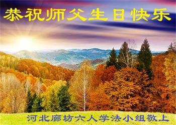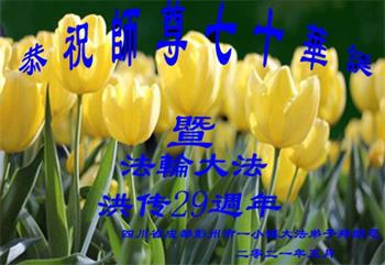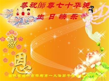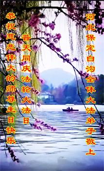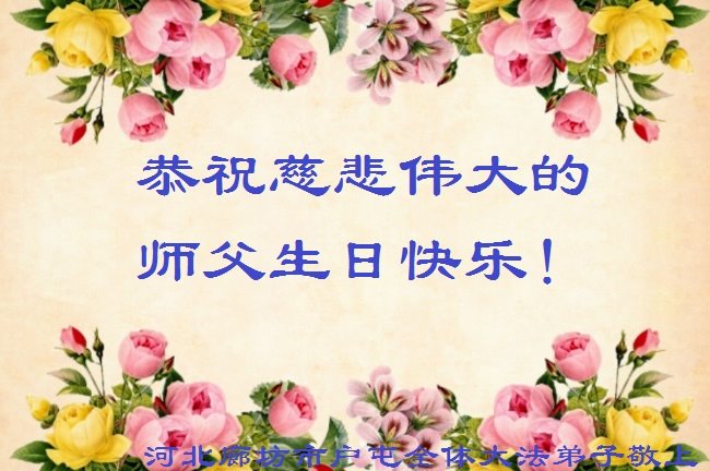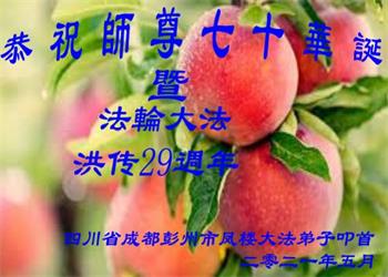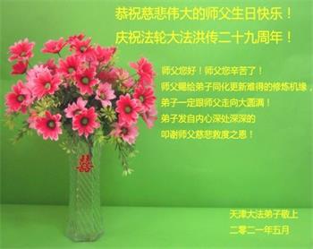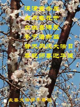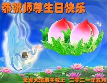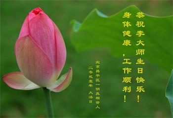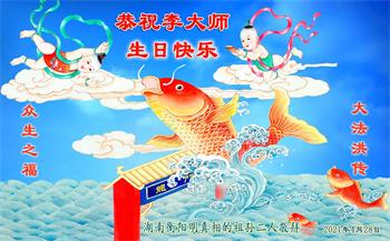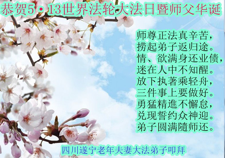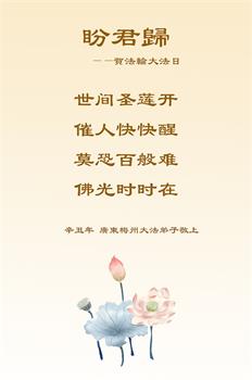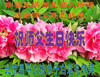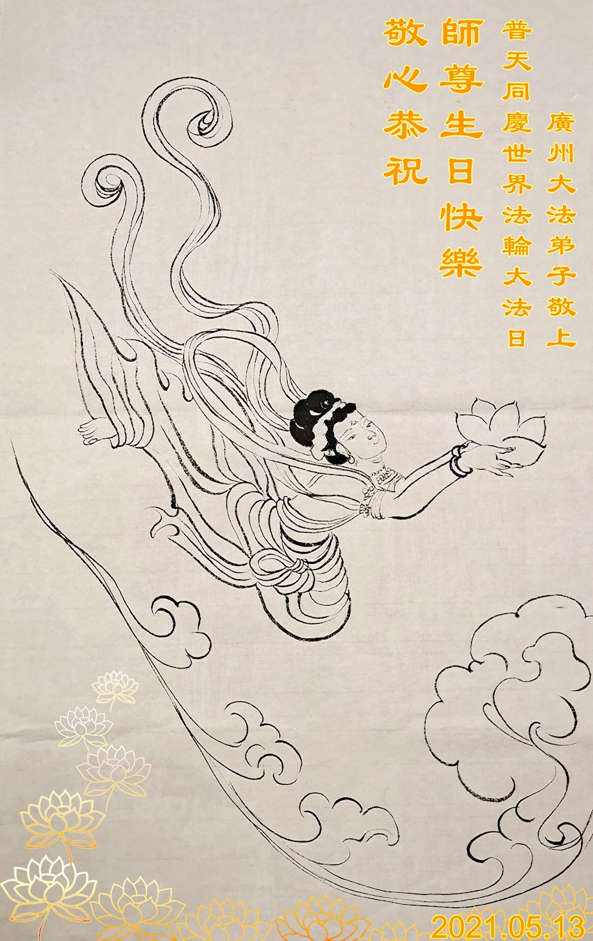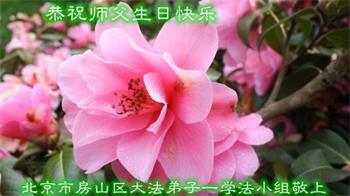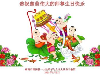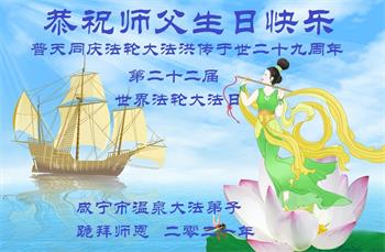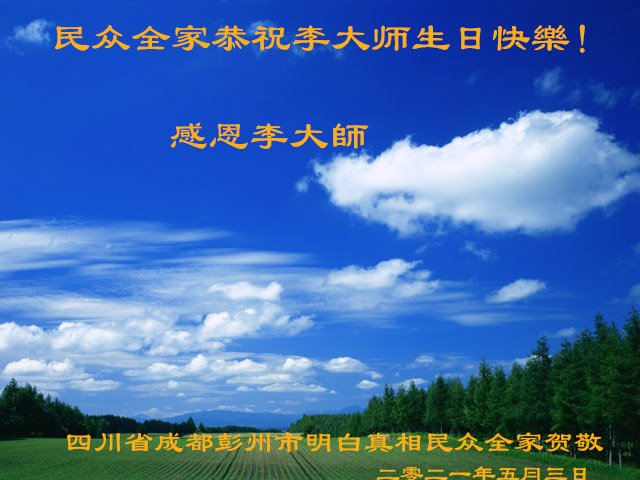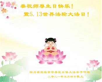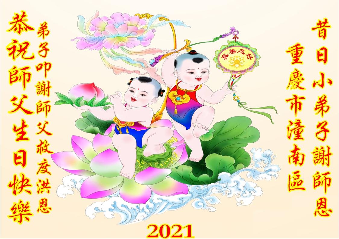 我是一个得法很晚的新学员。新学员祝师尊生日快乐!请师尊放心,我会用我很虔诚的一颗心把三件事做好,我会好好修炼,成为师尊的真修弟子,跟师尊回到我真正的家园。