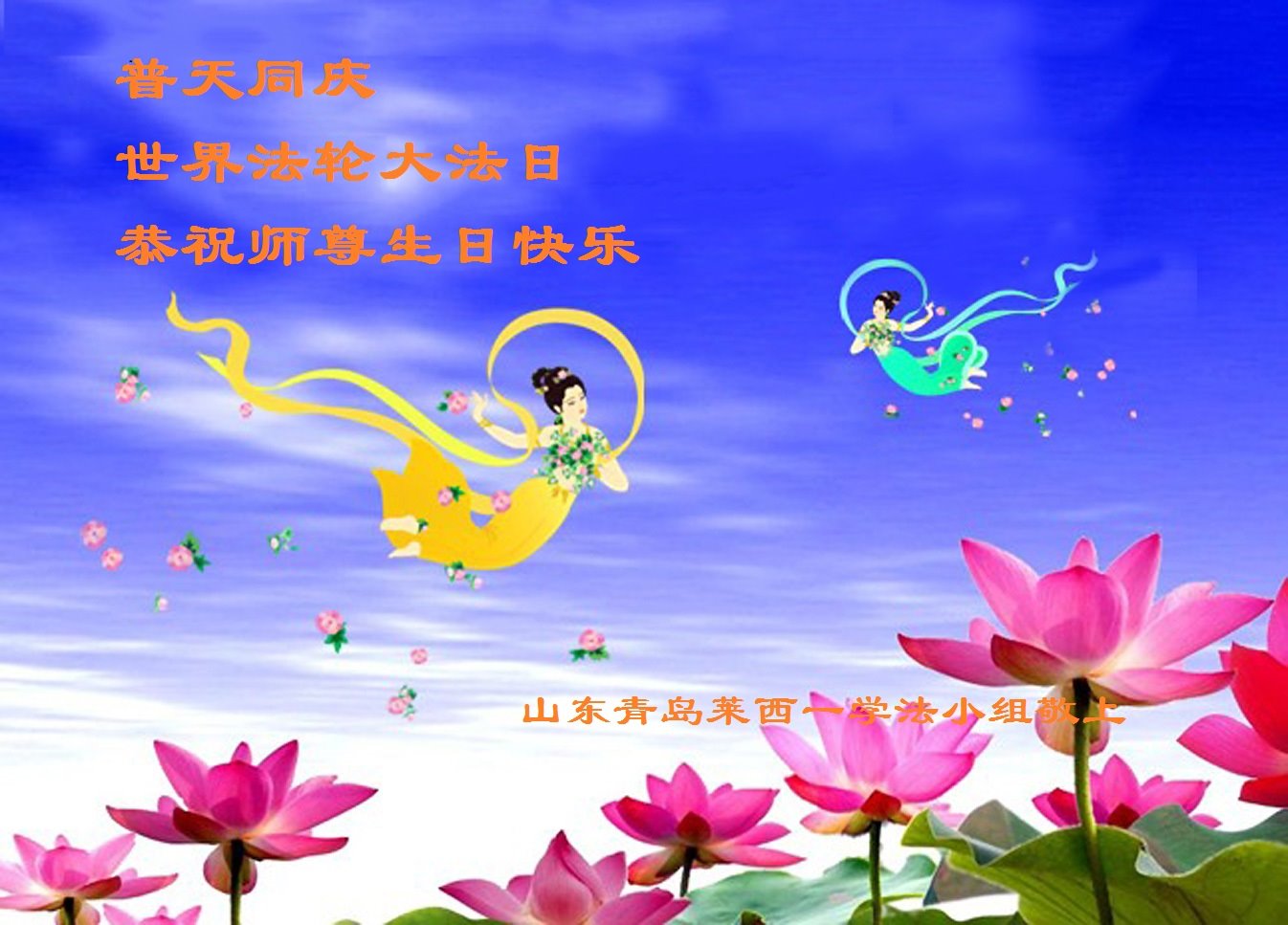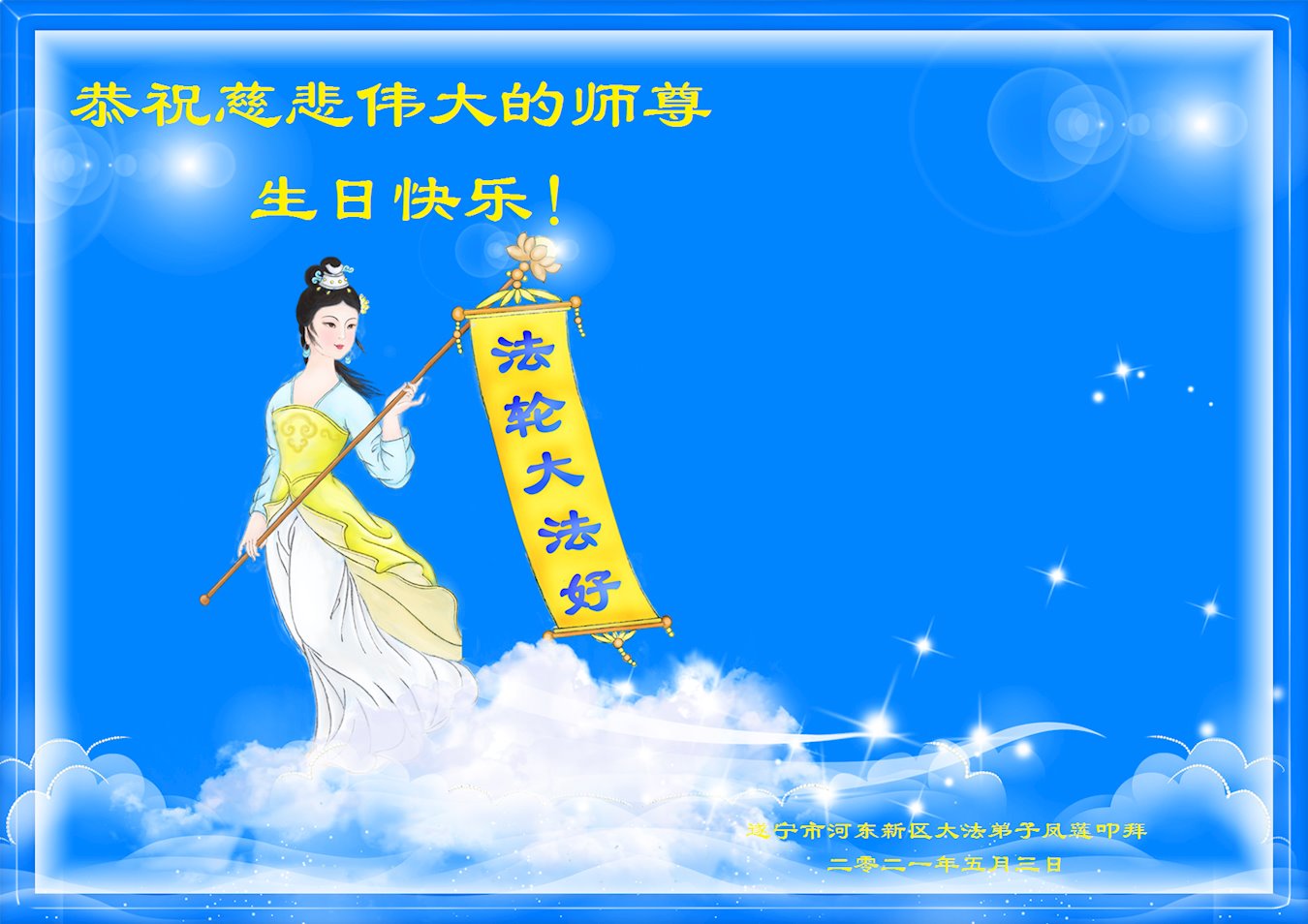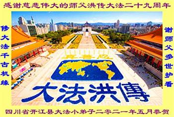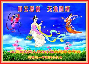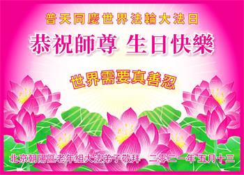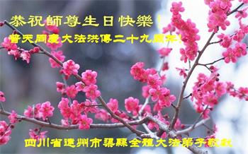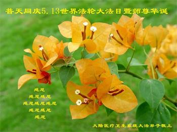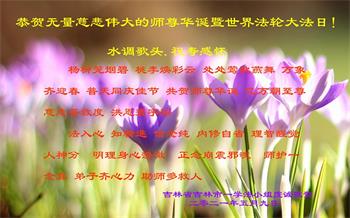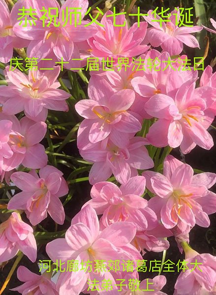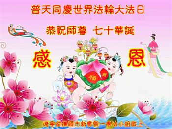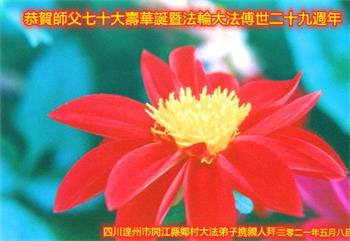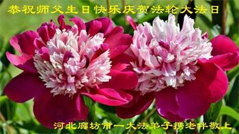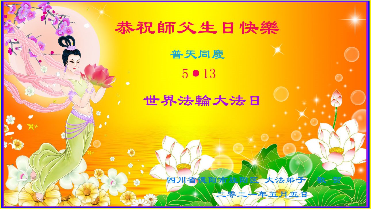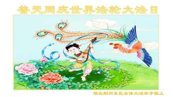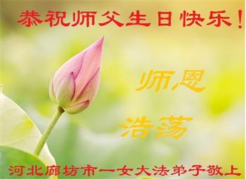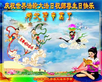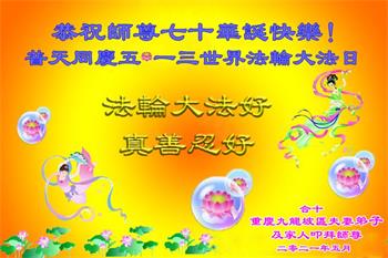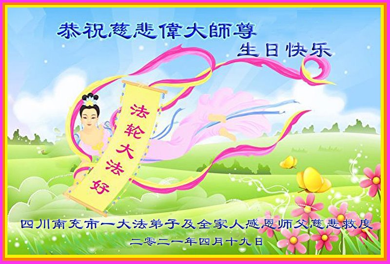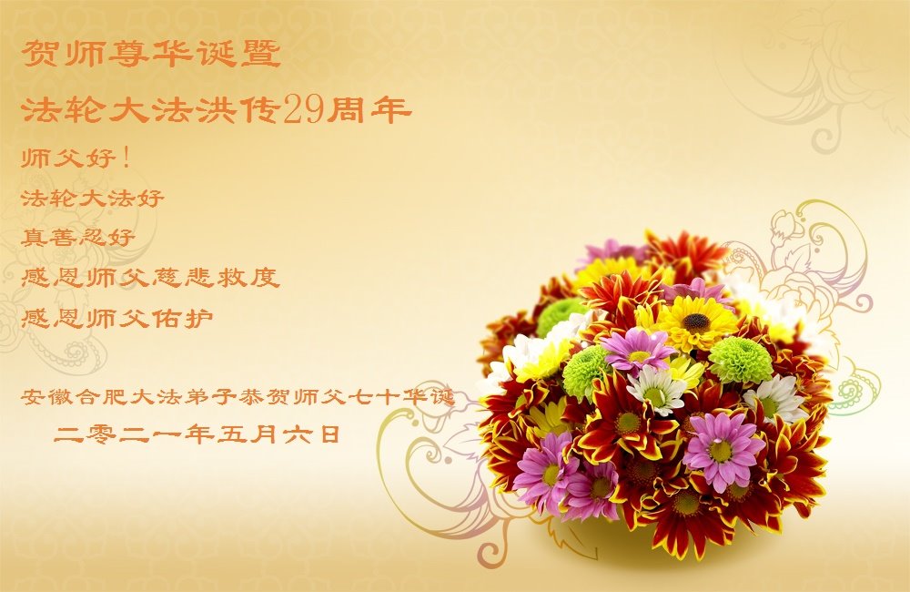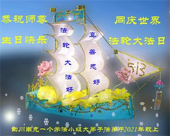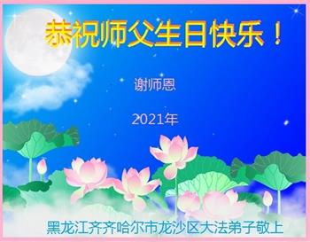 我是一个得法很晚的新学员。新学员祝师尊生日快乐!请师尊放心,我会用我很虔诚的一颗心把三件事做好,我会好好修炼,成为师尊的真修弟子,跟师尊回到我真正的家园。