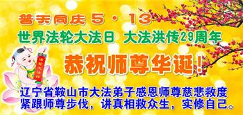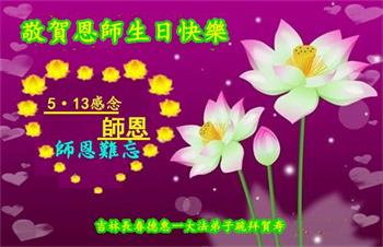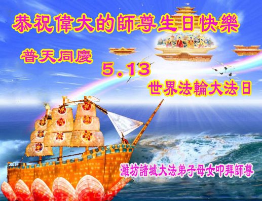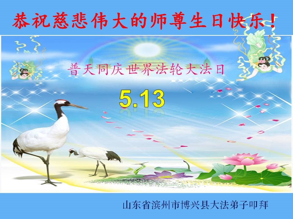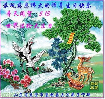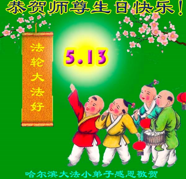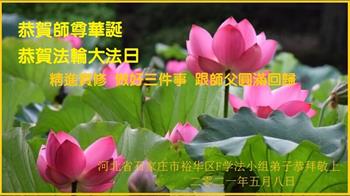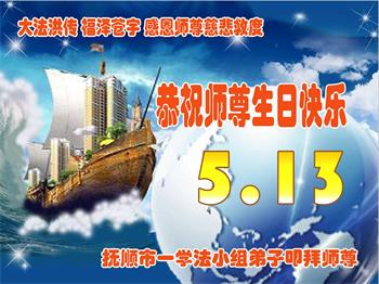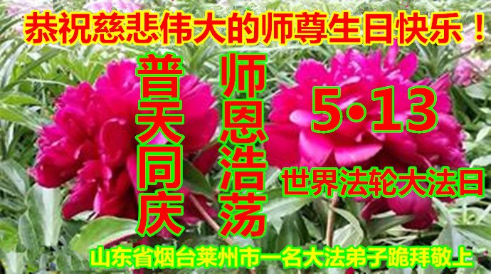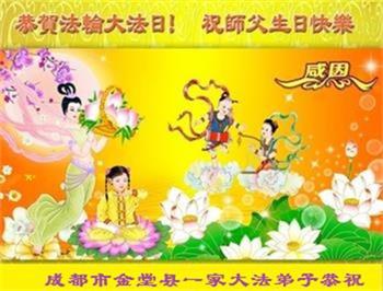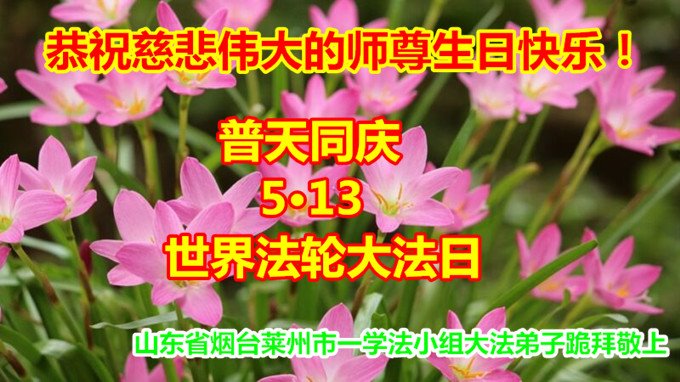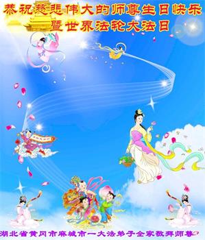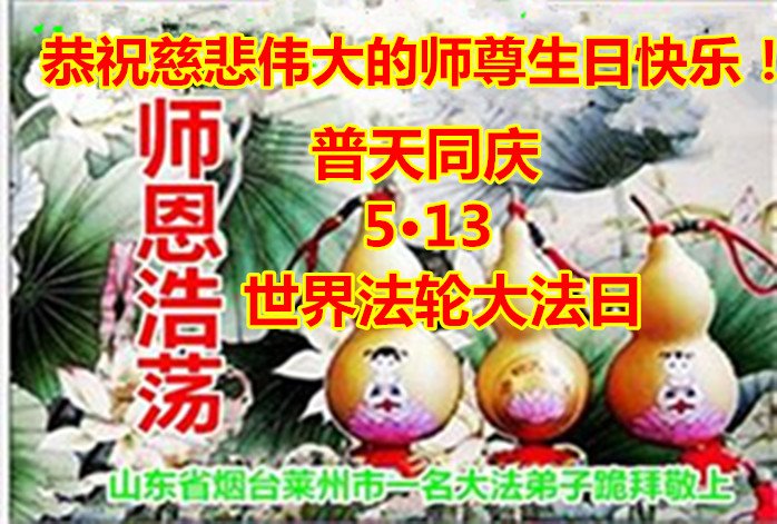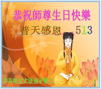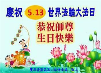 在师父华诞及513法轮大法日来临之际,我(新学员,只看书还没炼功)及全家五口人恭祝师父生日快乐!谢谢师父在弟子遇到危难之时救了弟子一命!谢谢师父的救命之恩!