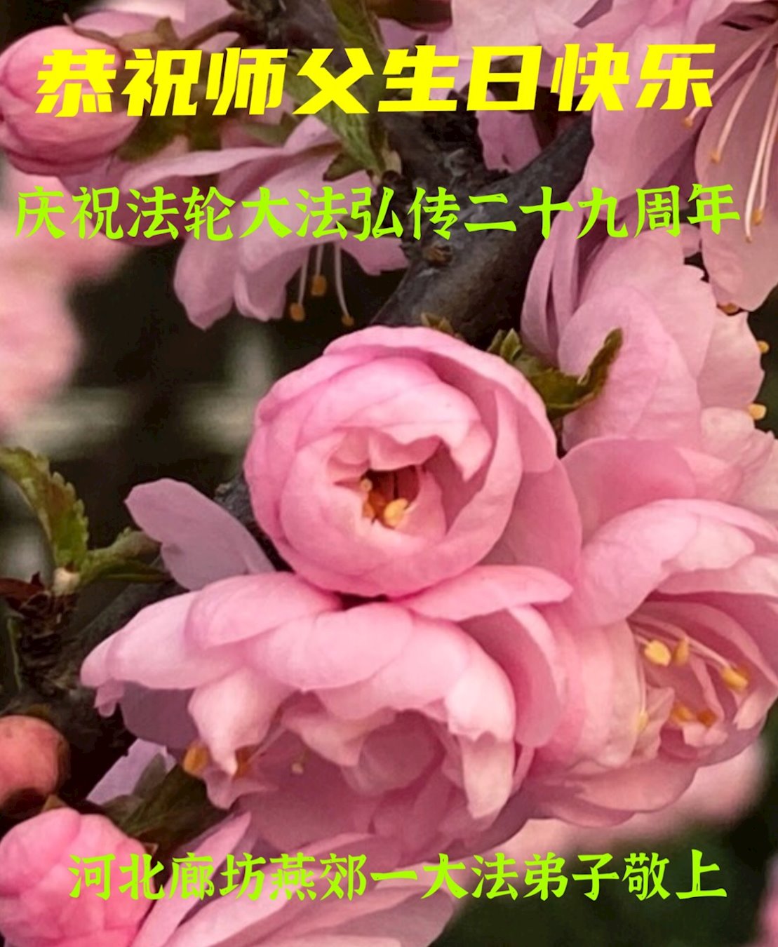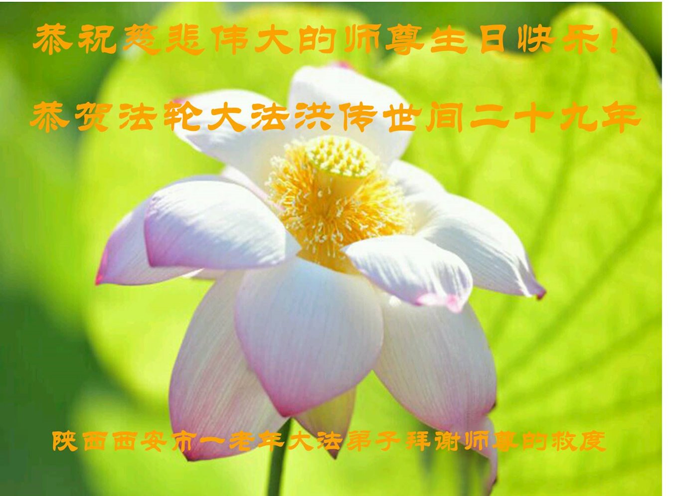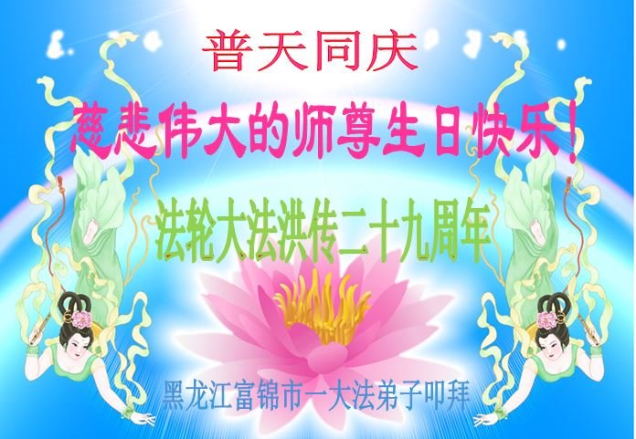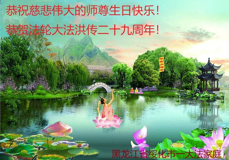庆祝法轮大法洪传二十九周年!恭祝慈悲伟大的师尊生日快乐!师尊辛苦了!感恩师尊慈悲救度!叩拜师尊!