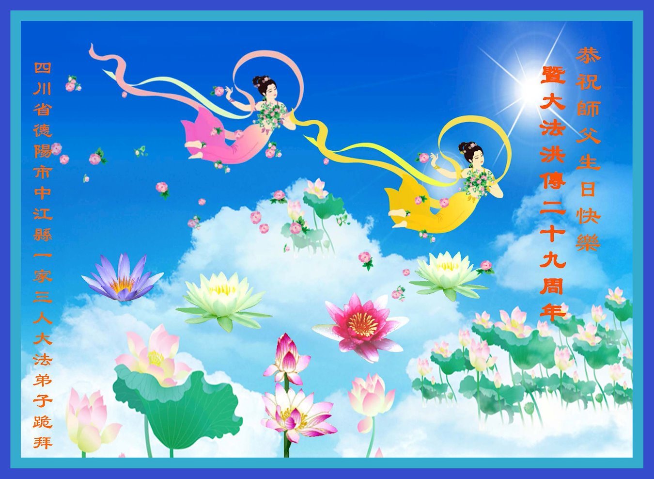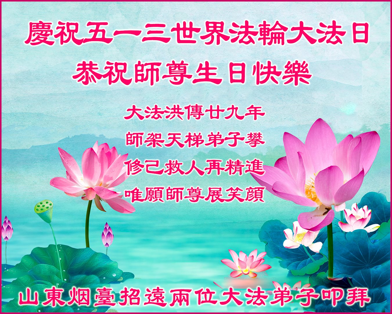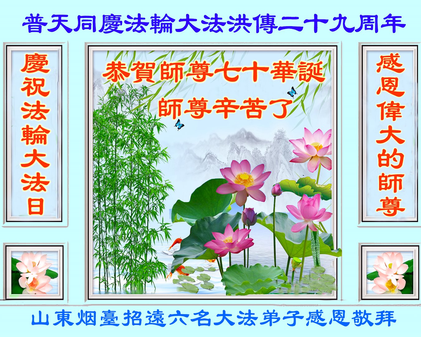 庆祝法轮大法洪传二十九周年!恭祝慈悲伟大的师尊生日快乐!师尊辛苦了!感恩师尊慈悲救度!叩拜师尊!