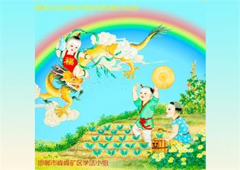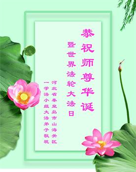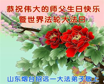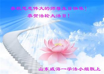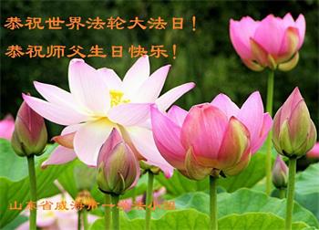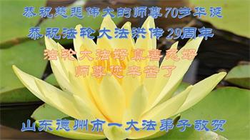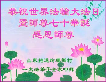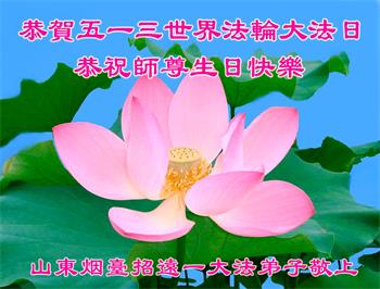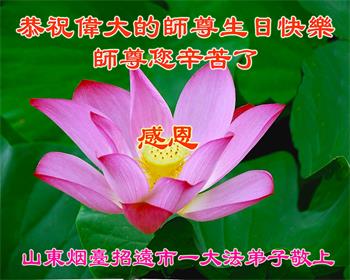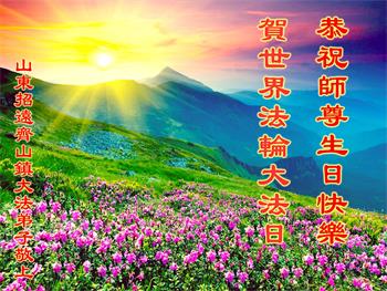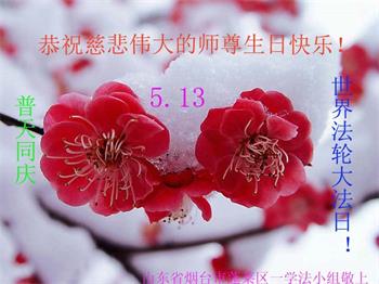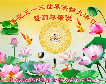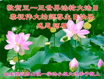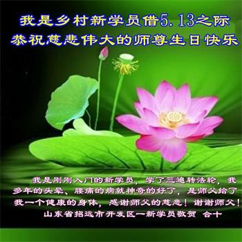 山东省招远市开发区新入门的大法学员敬贺 合十