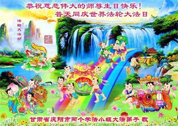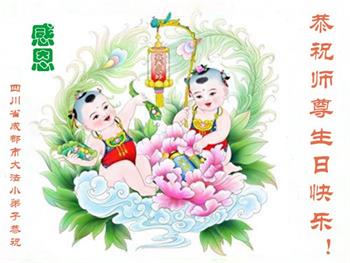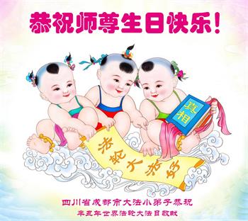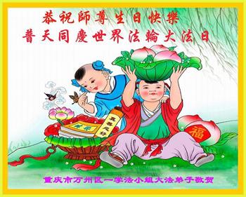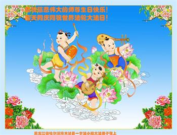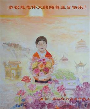 我是去年刚得法的大法小弟子,今年读二年级。祝师父生日快乐!