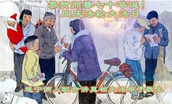 已经给我做了三退。现在我也想学法,一直想请一本李老师的宝书,就是不知道到哪里能请到。我问她能给我请一本吗?她问:“你真想学吗?”我说:“是呀!”并诚心的把我的电话号码给了这位大法弟子。她很快的给我请了一本《转法轮》。我捧着宝书一口气学了三遍。