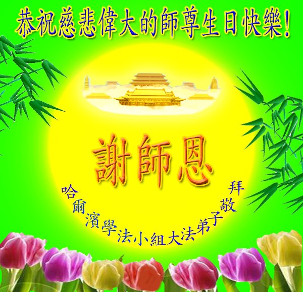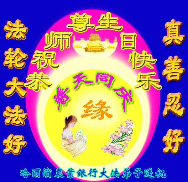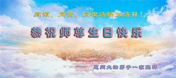 我是新得法的大法弟子,在师父的生日到来之际,弟子在这里叩拜师尊,恭祝恩师生日快乐!同时也祝法轮大法洪传世界!