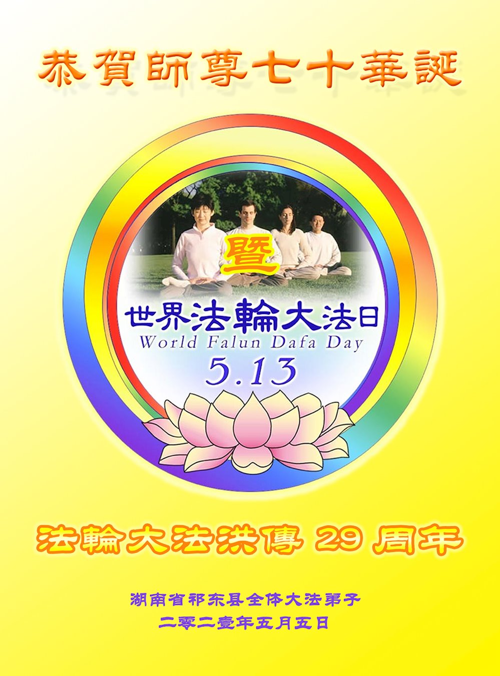 庆祝法轮大法洪传二十九周年!