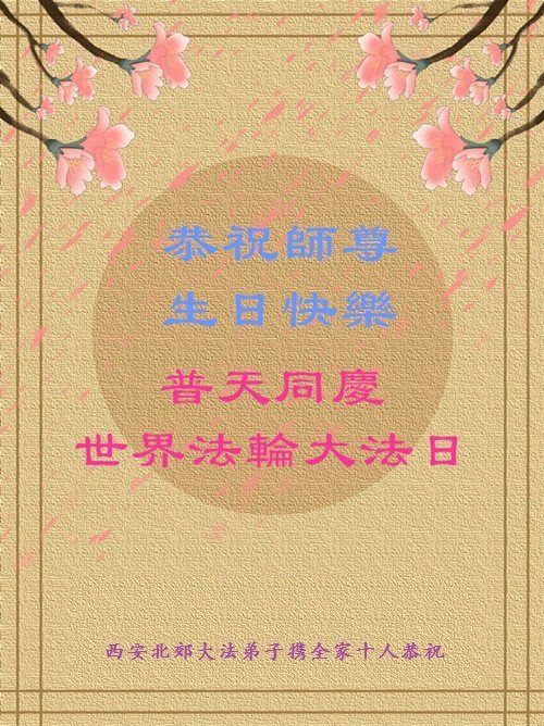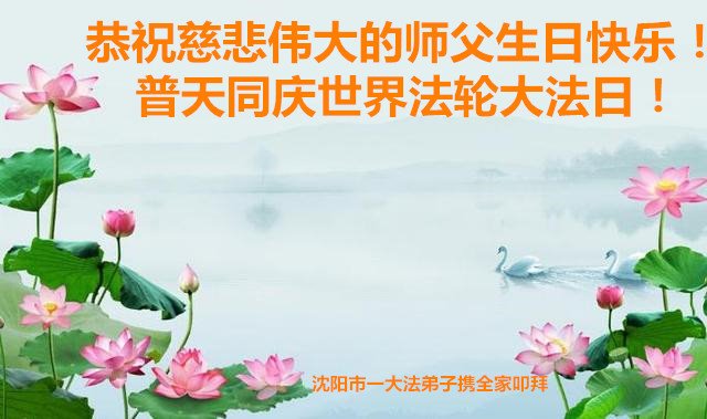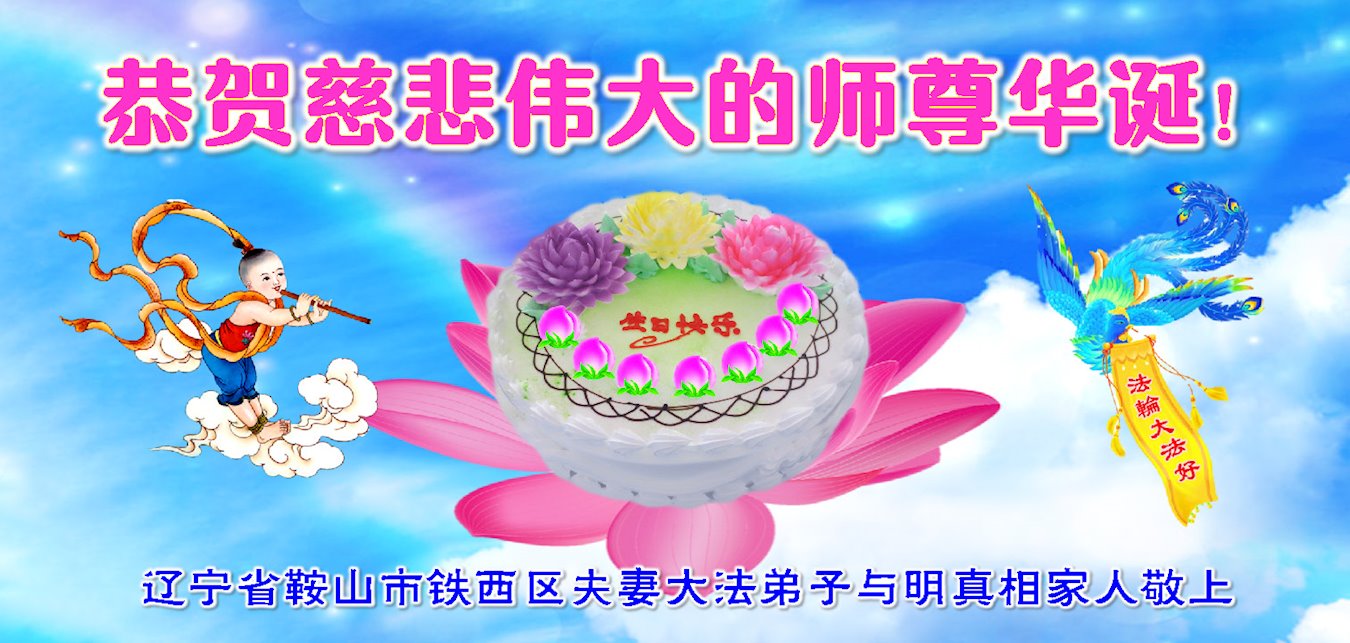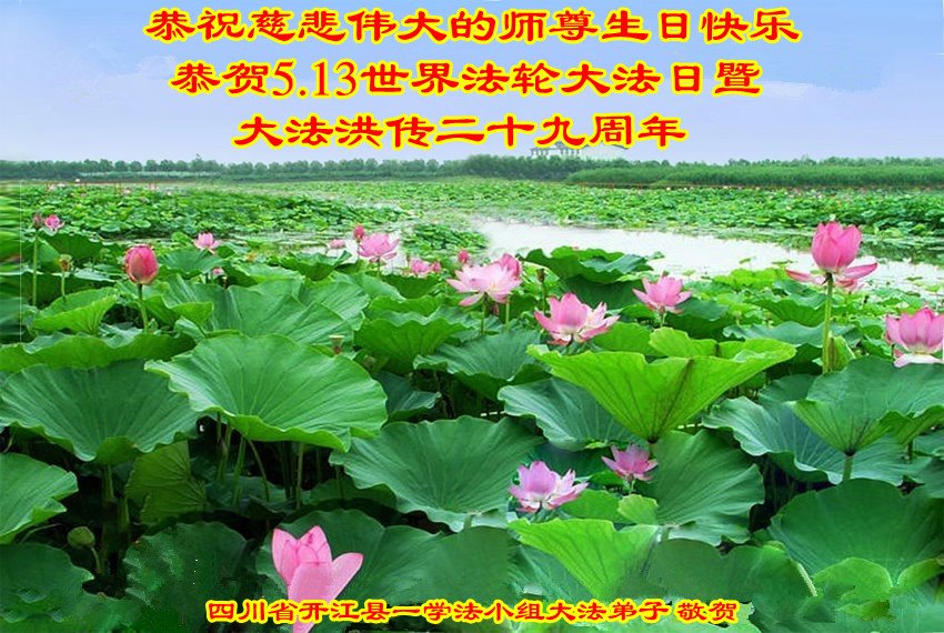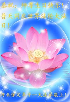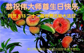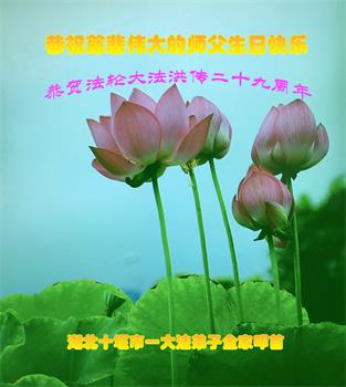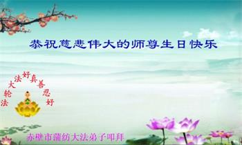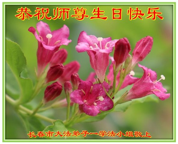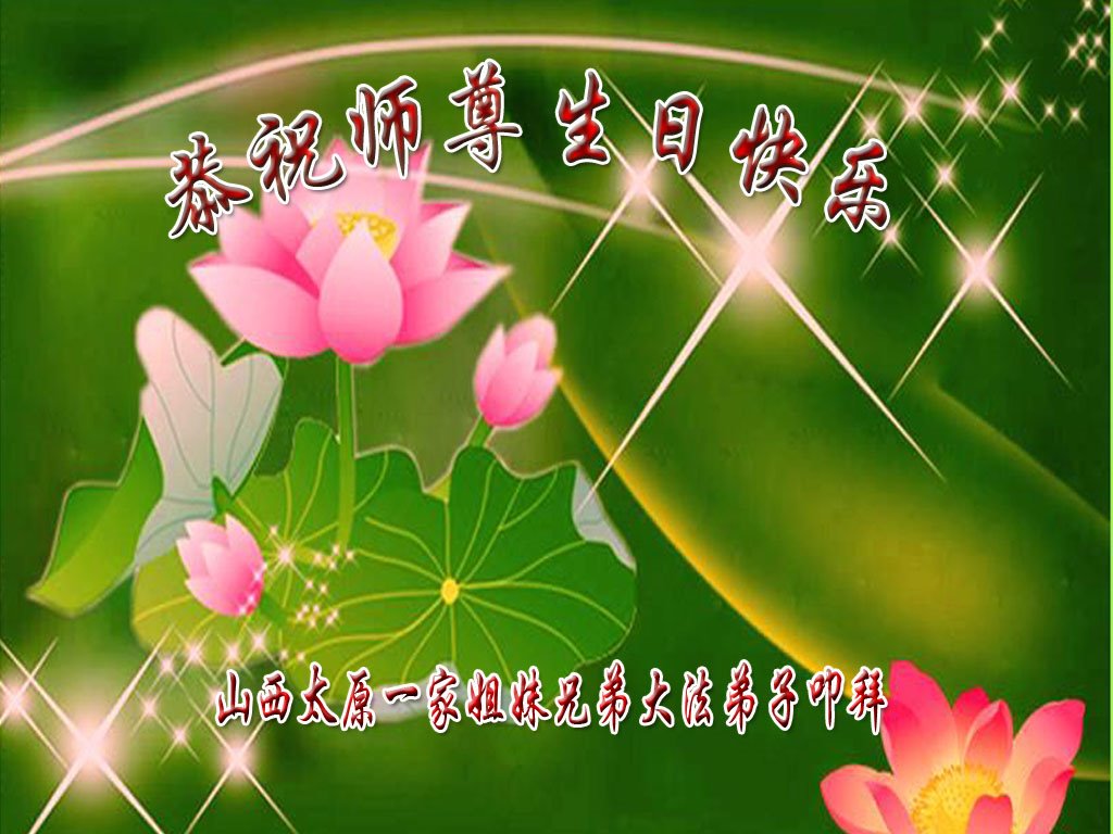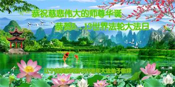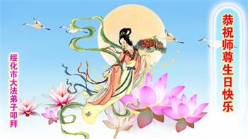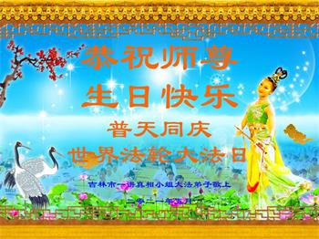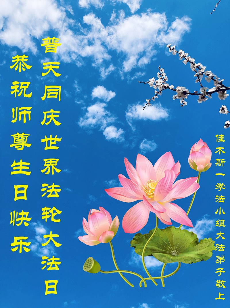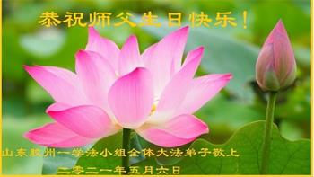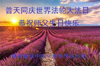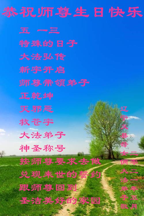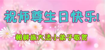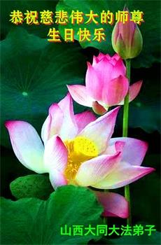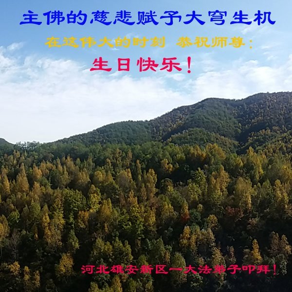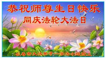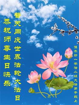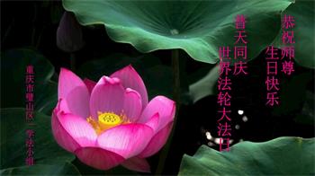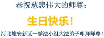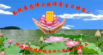 师尊生日即将到来,我们学法小组全体大法弟子恭祝师尊生日快乐!并代表我们的家人和明真相得福报的世人,祝伟大慈悲的师父生日快乐!感恩师父的慈悲救度,得救的众生祝师父生日快乐!我们学法小组整体配合,提高心性,学好法做好三件事,多救众生,感谢师父的慈悲救度。