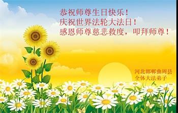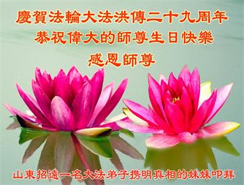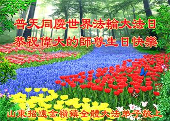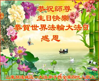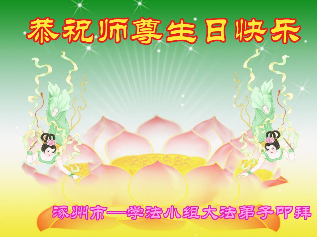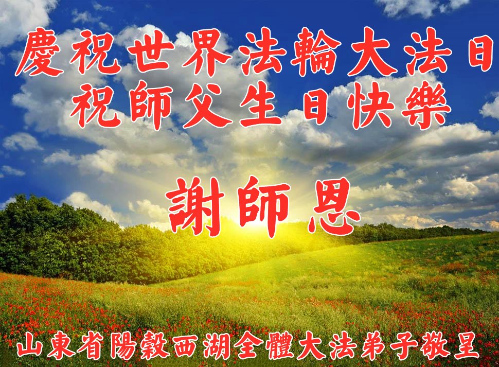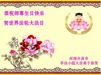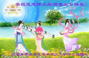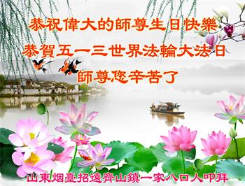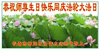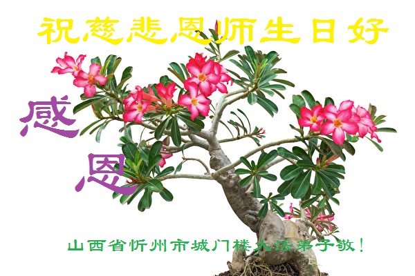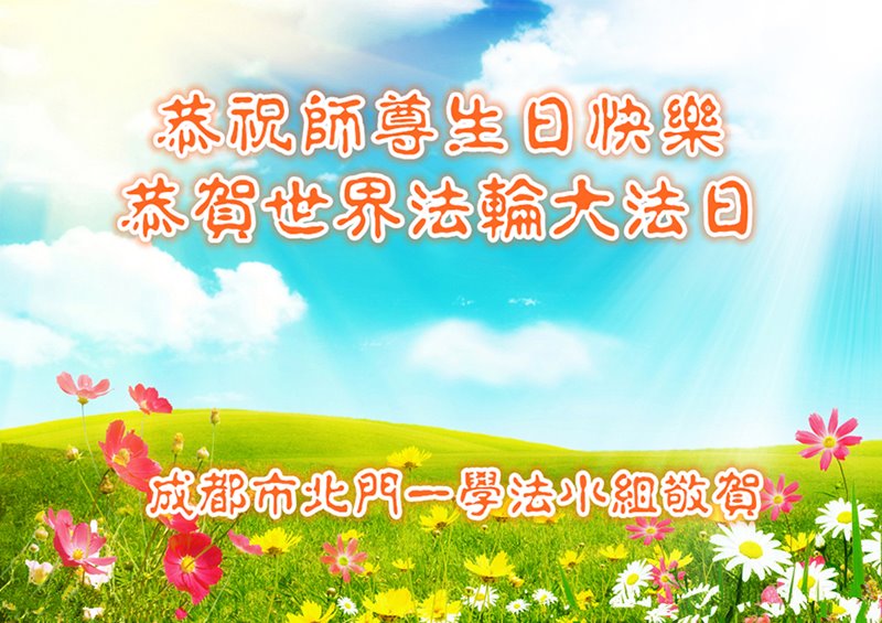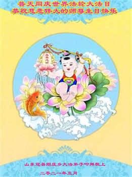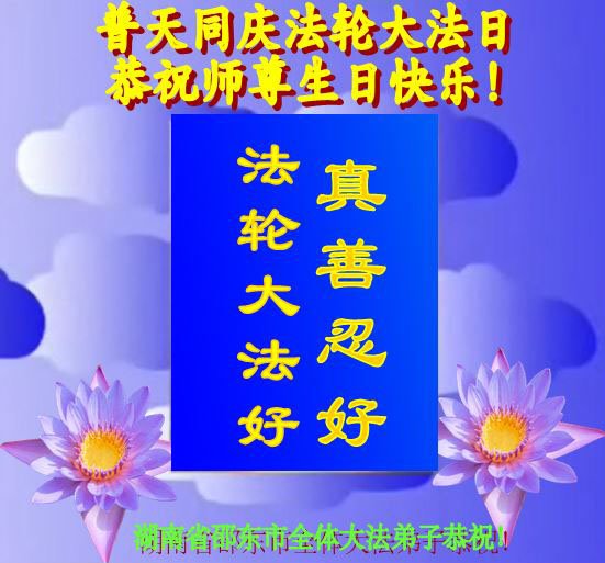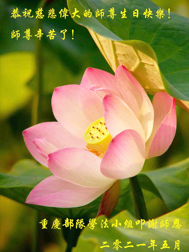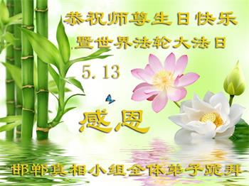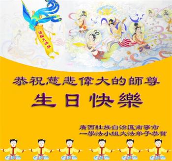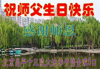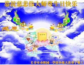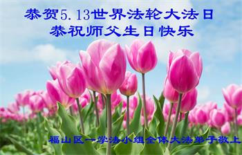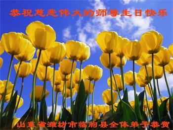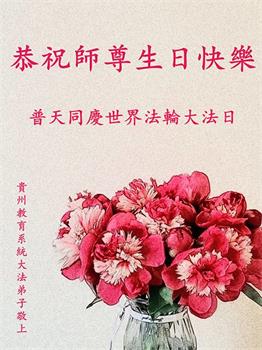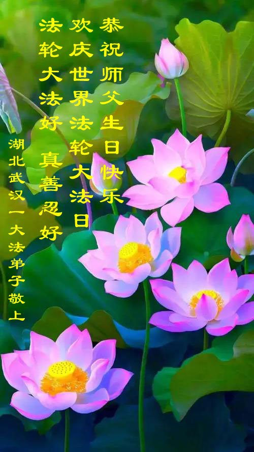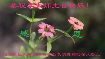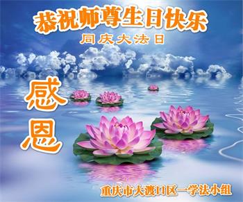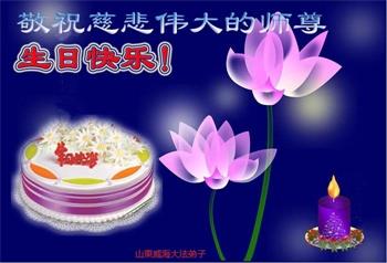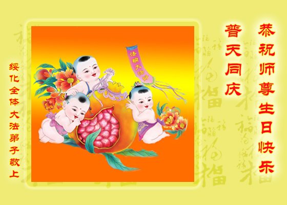 师尊生日即将到来,我们学法小组全体大法弟子恭祝师尊生日快乐!并代表我们的家人和明真相得福报的世人,祝伟大慈悲的师父生日快乐!感恩师父的慈悲救度,得救的众生祝师父生日快乐!我们学法小组整体配合,提高心性,学好法做好三件事,多救众生,感谢师父的慈悲救度。