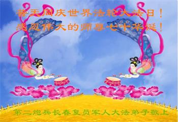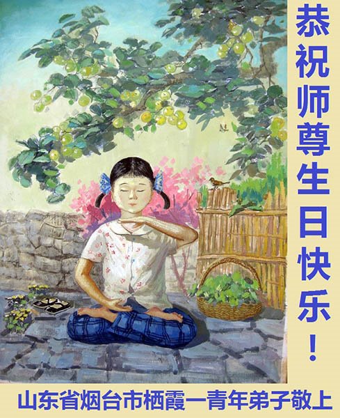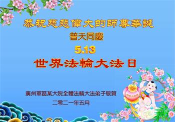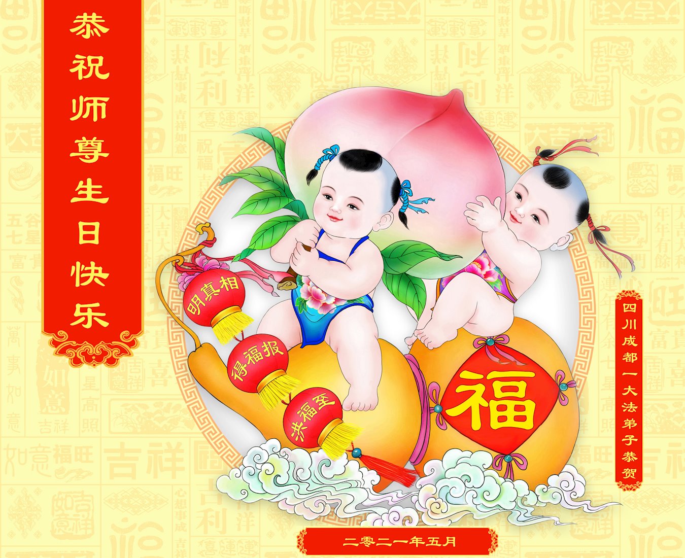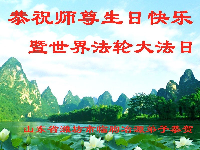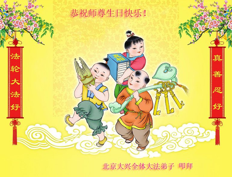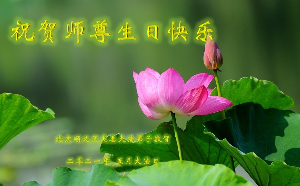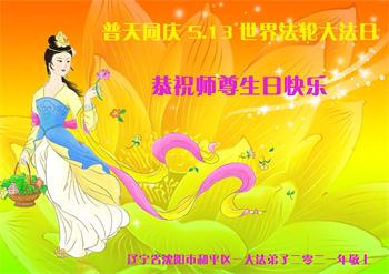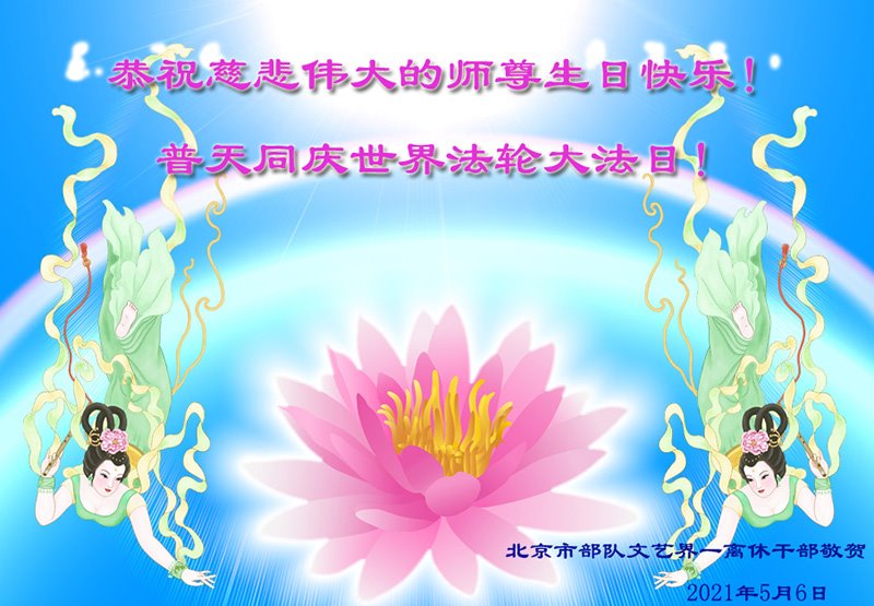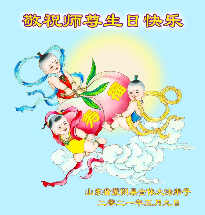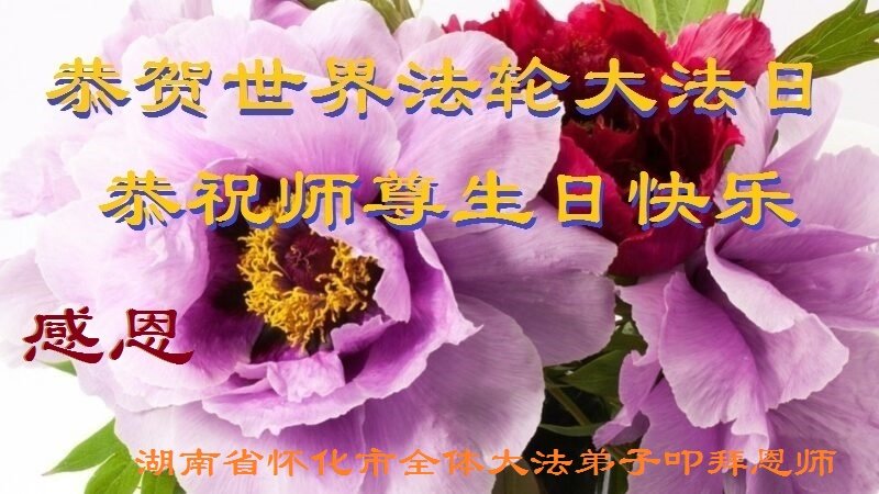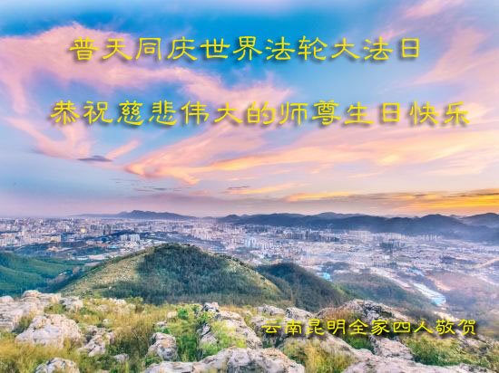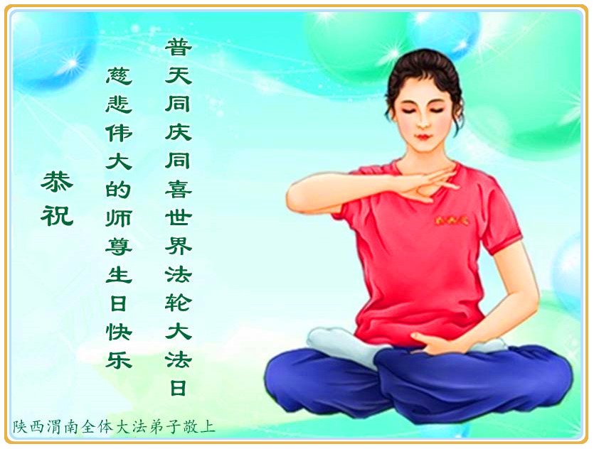 福建省福州市一大法弟子在贺词中说:“弟子双手合十,发自心底的恭祝慈悲伟大的师父华诞!每当5·13这辉煌的日子到来之际,弟子内心都充满对师父的无比感恩和思念。是师父把我脱胎换骨,重塑成一个全新的真我。”