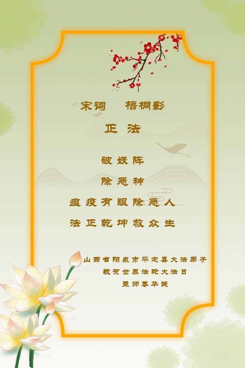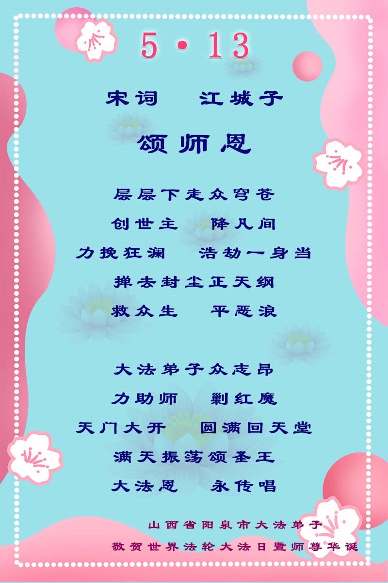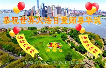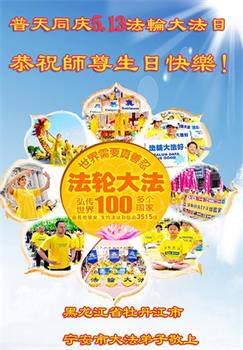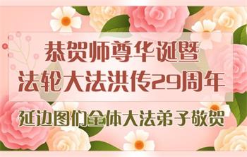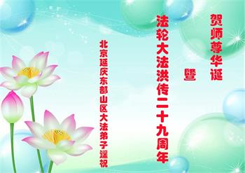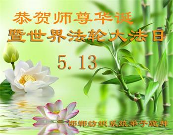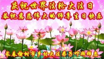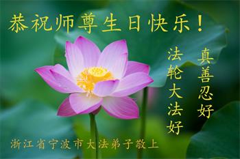 在这普天同庆的日子里,浙江省宁波余姚市全体大法弟子恭贺师尊生日快乐!暨法轮大法日!弟子一定会勇猛精進,做好三件事。
