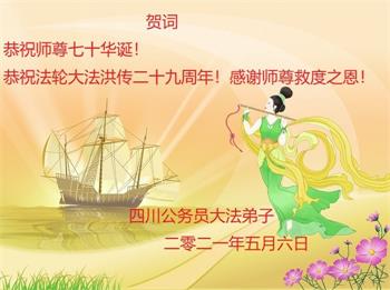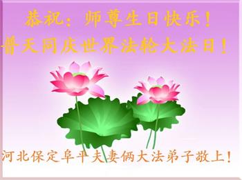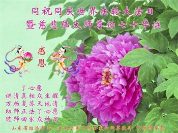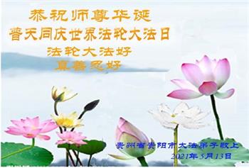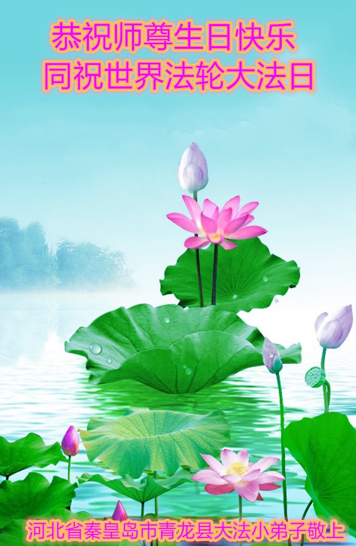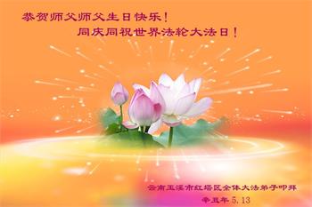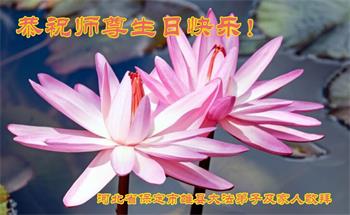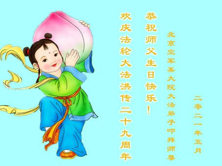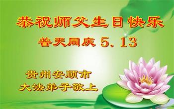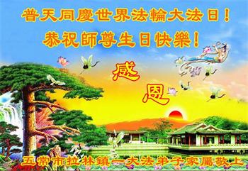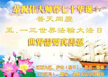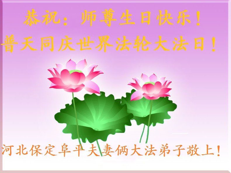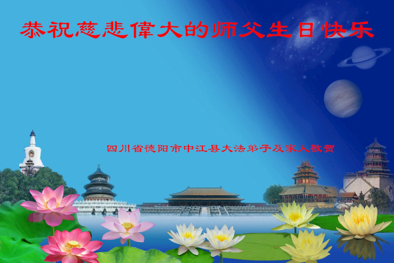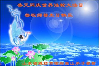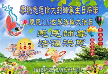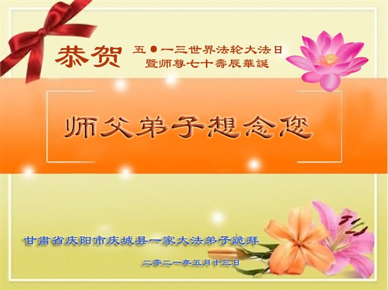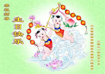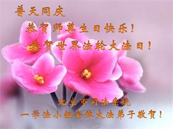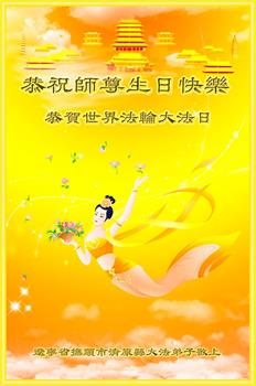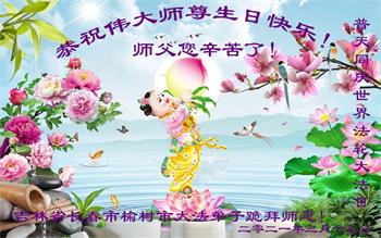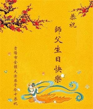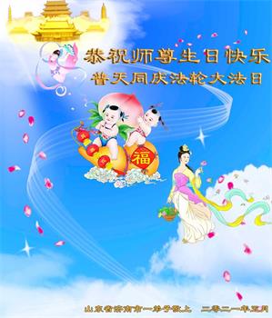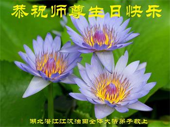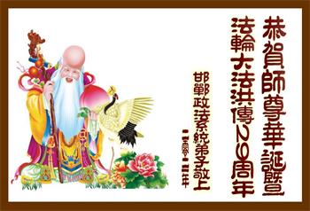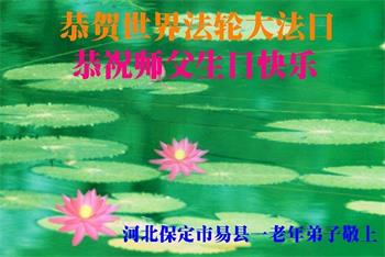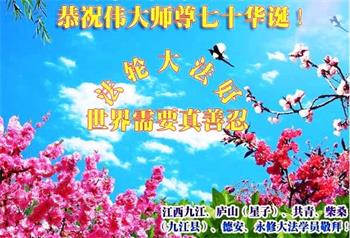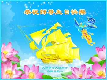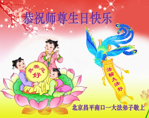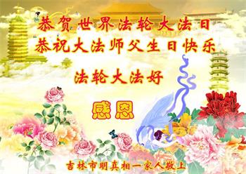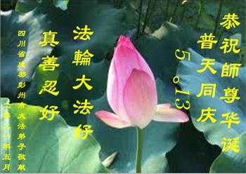 下面是来自北京市、天津市、上海市、重庆市、黑龙江省、吉林省、辽宁省、甘肃省、青海省、河北省、河南省、山东省、安徽省、浙江省、江苏省、江西省、陕西省、山西省、湖北省、湖南省、四川省、贵州省、广东省、云南省、福建省、海南省、新疆维吾尔自治区、内蒙古自治区、广西壮族自治区、宁夏回族自治区的法轮功学员敬致师尊的部份贺词。
