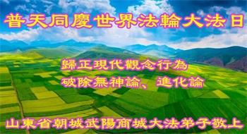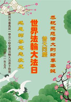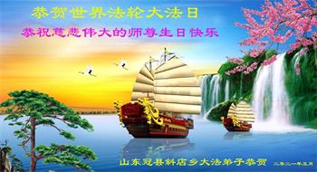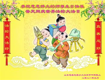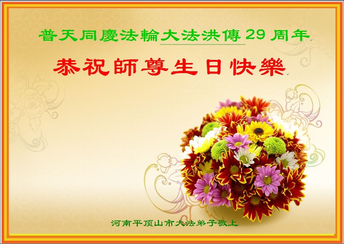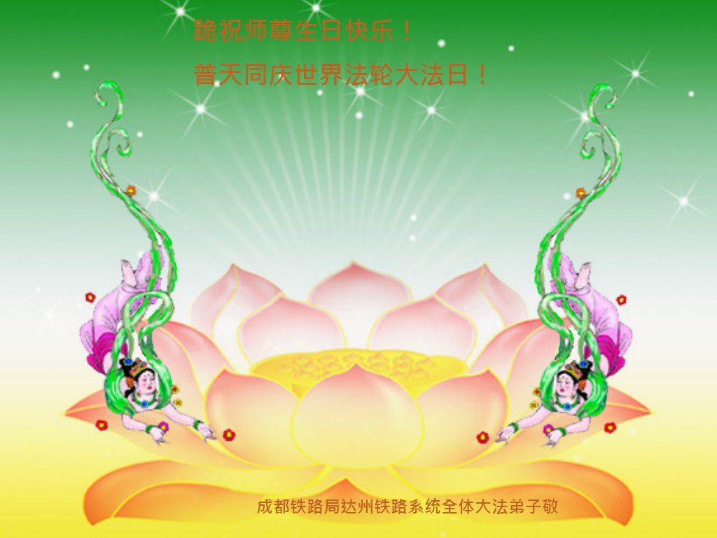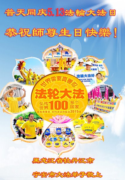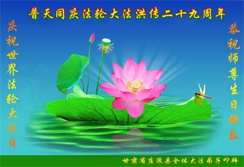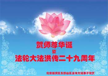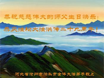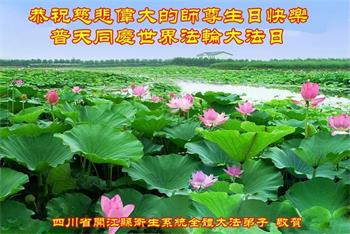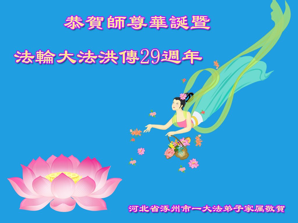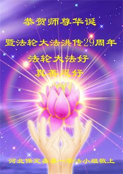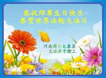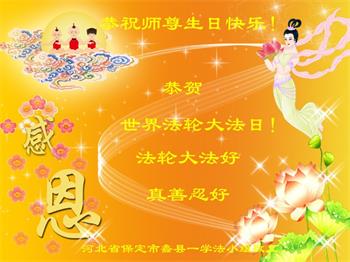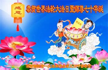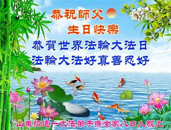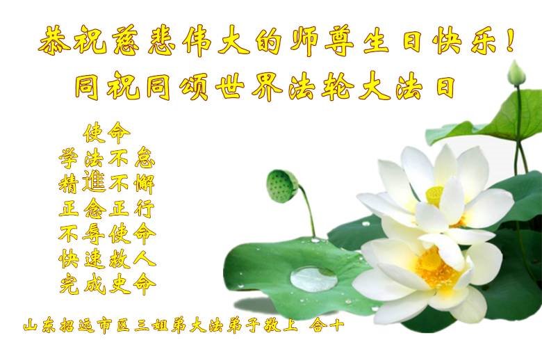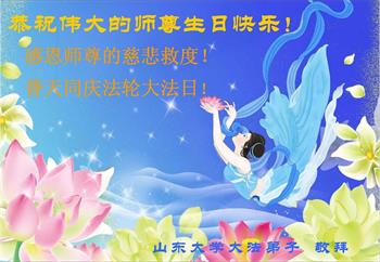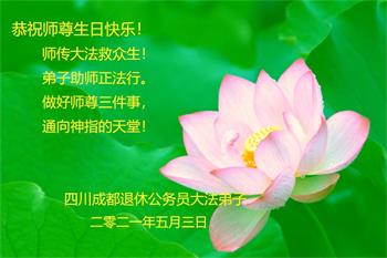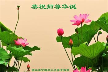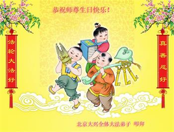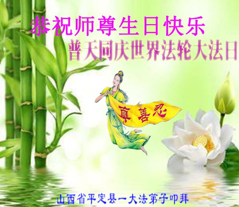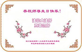 下面是来自北京市、天津市、上海市、重庆市、黑龙江省、吉林省、辽宁省、甘肃省、青海省、河北省、河南省、山东省、安徽省、浙江省、江苏省、江西省、陕西省、山西省、湖北省、湖南省、四川省、贵州省、广东省、云南省、福建省、海南省、新疆维吾尔自治区、内蒙古自治区、广西壮族自治区、宁夏回族自治区的法轮功学员敬致师尊的部份贺词。