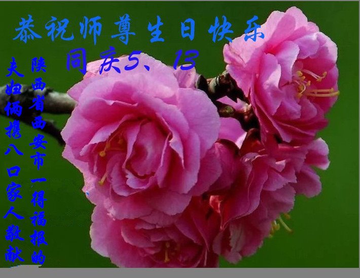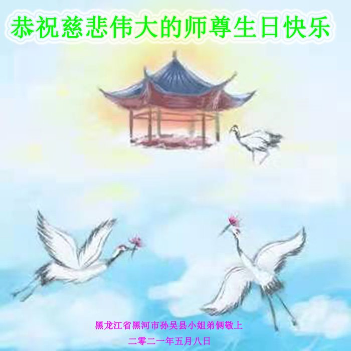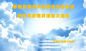 我们都是老年大法弟子,我们都没有见过师父,在师父华诞来临之际,我们都非常想念师父,只能远离重洋遥祝慈悲伟大的师父生日快乐!