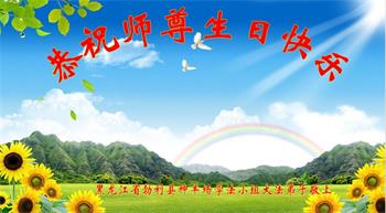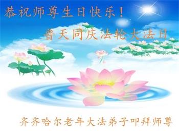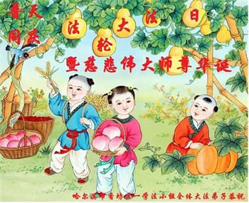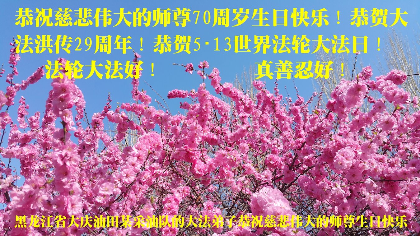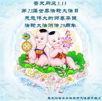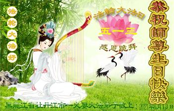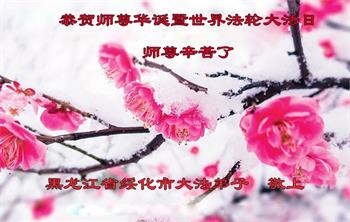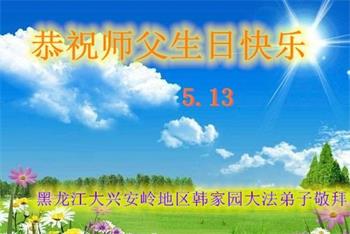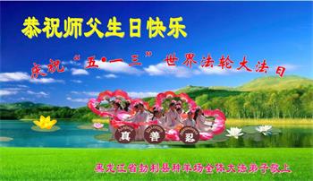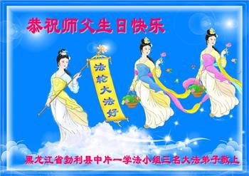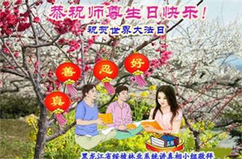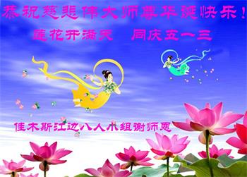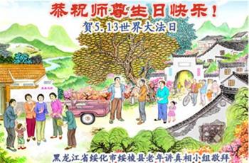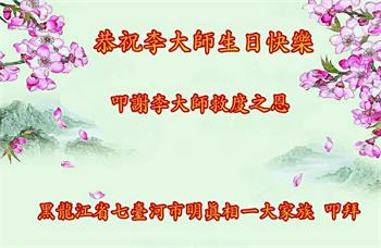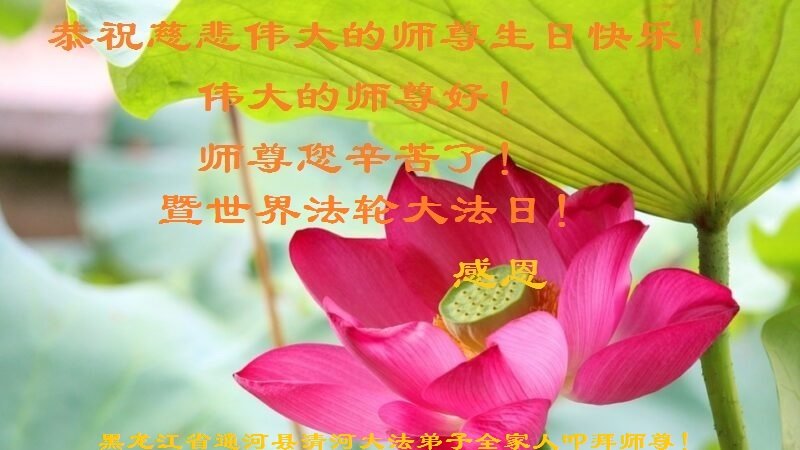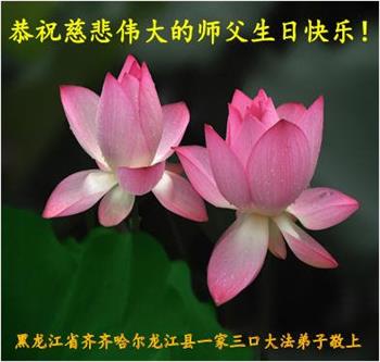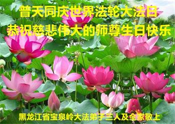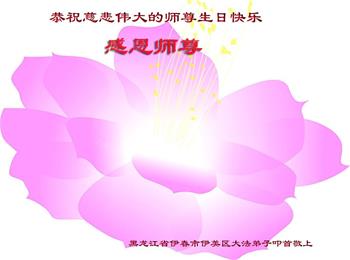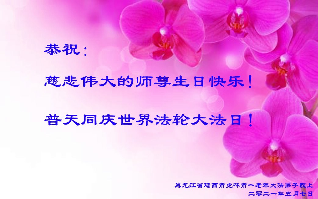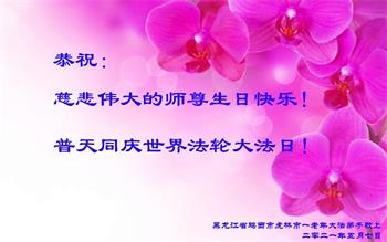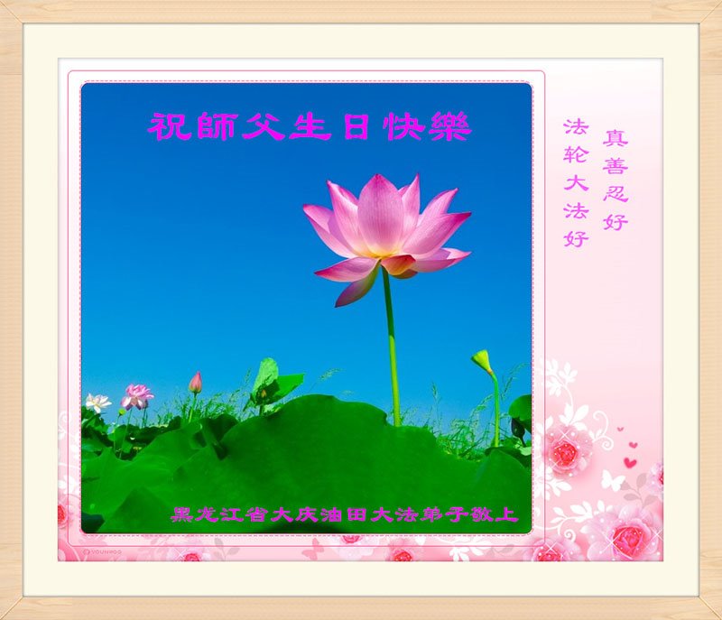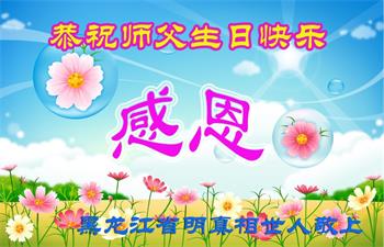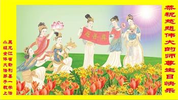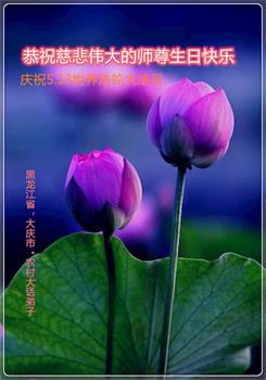 黑龙江大兴安岭老年大法弟子学法小组写道:“我们都没有见过师父,在师父华诞来临之际,我们都非常想念师父,只能远隔重洋遥祝慈悲伟大的师父生日快乐!在这末劫最后时期,我们要更加勇猛精進。”