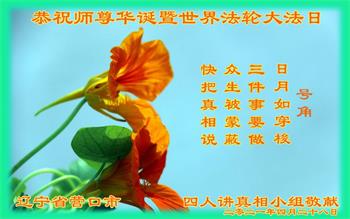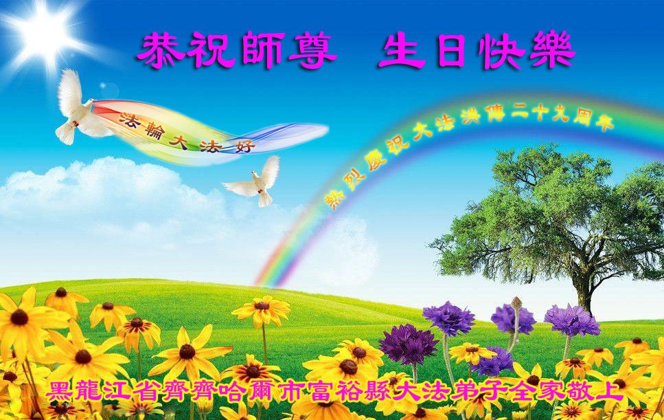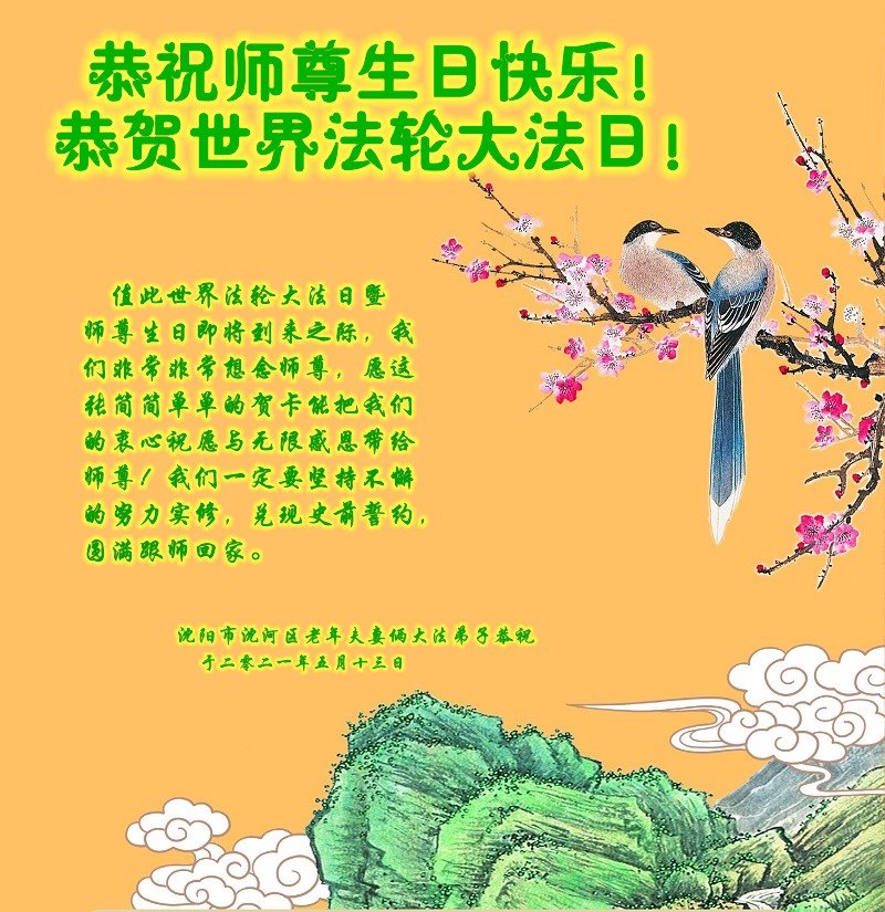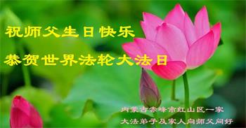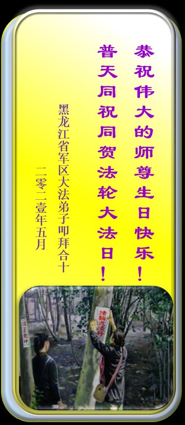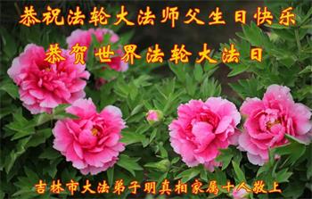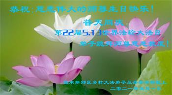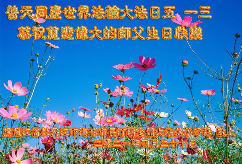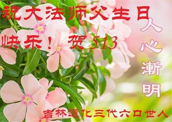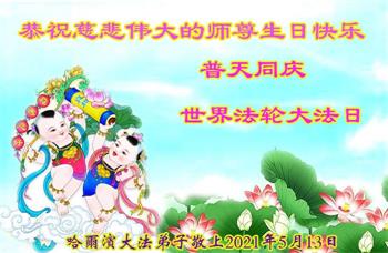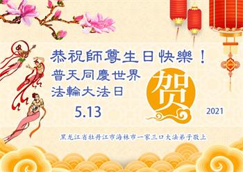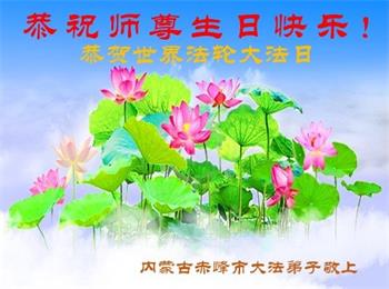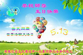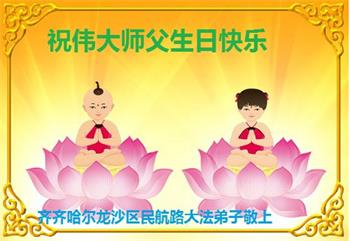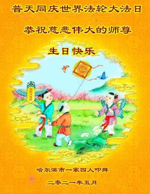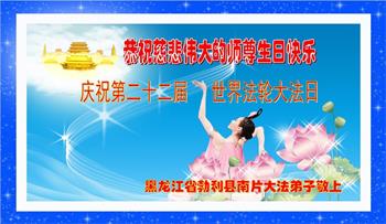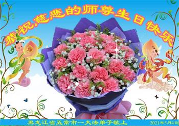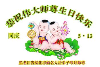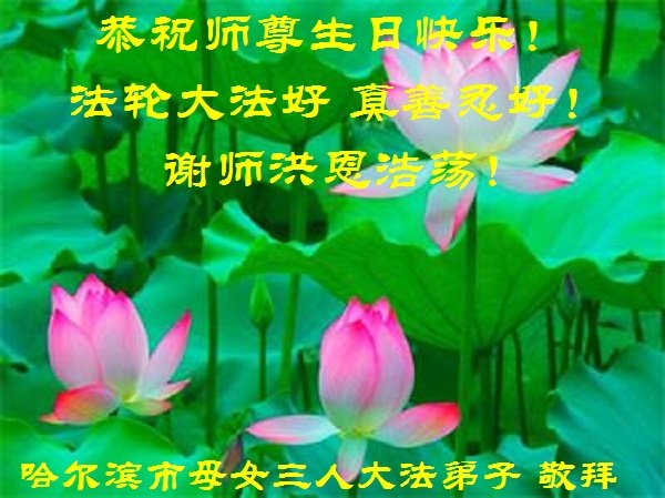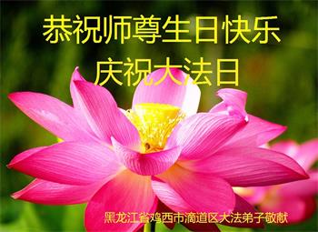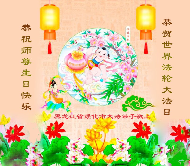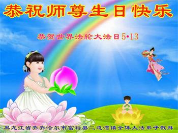 黑龙江大兴安岭老年大法弟子学法小组写道:“我们都没有见过师父,在师父华诞来临之际,我们都非常想念师父,只能远隔重洋遥祝慈悲伟大的师父生日快乐!在这末劫最后时期,我们要更加勇猛精進。”
