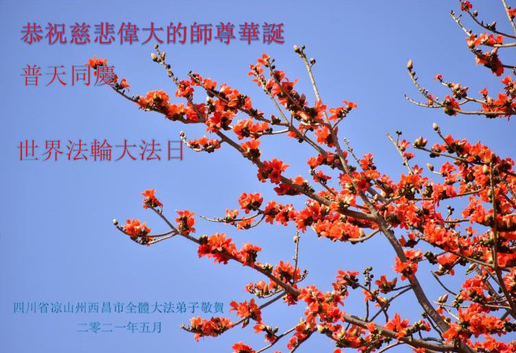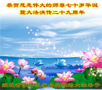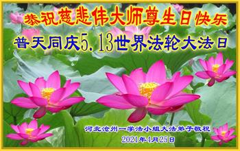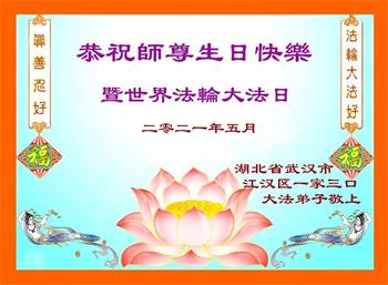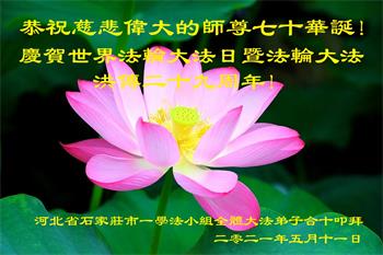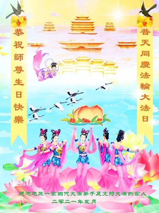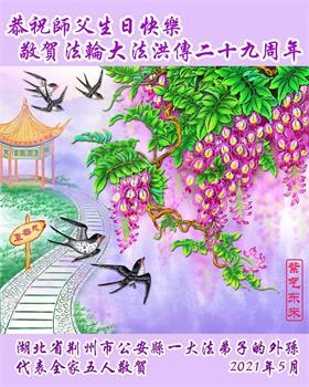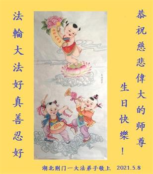 在二零二一年五一三世界法轮大法日即将到来之际,在这普天同庆同庆的时刻,湖北省孝感市安陆市一学法小组在此遥祝慈悲伟大的师尊生日快乐!我们会继续做好助师正法,救度众生的事,谢谢师尊。