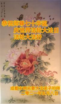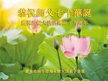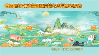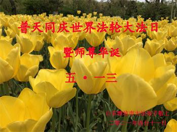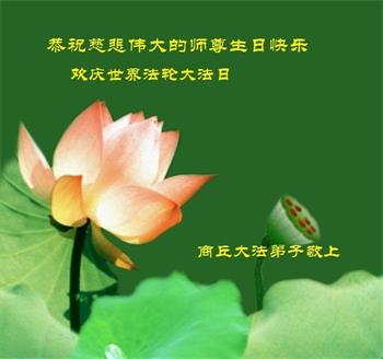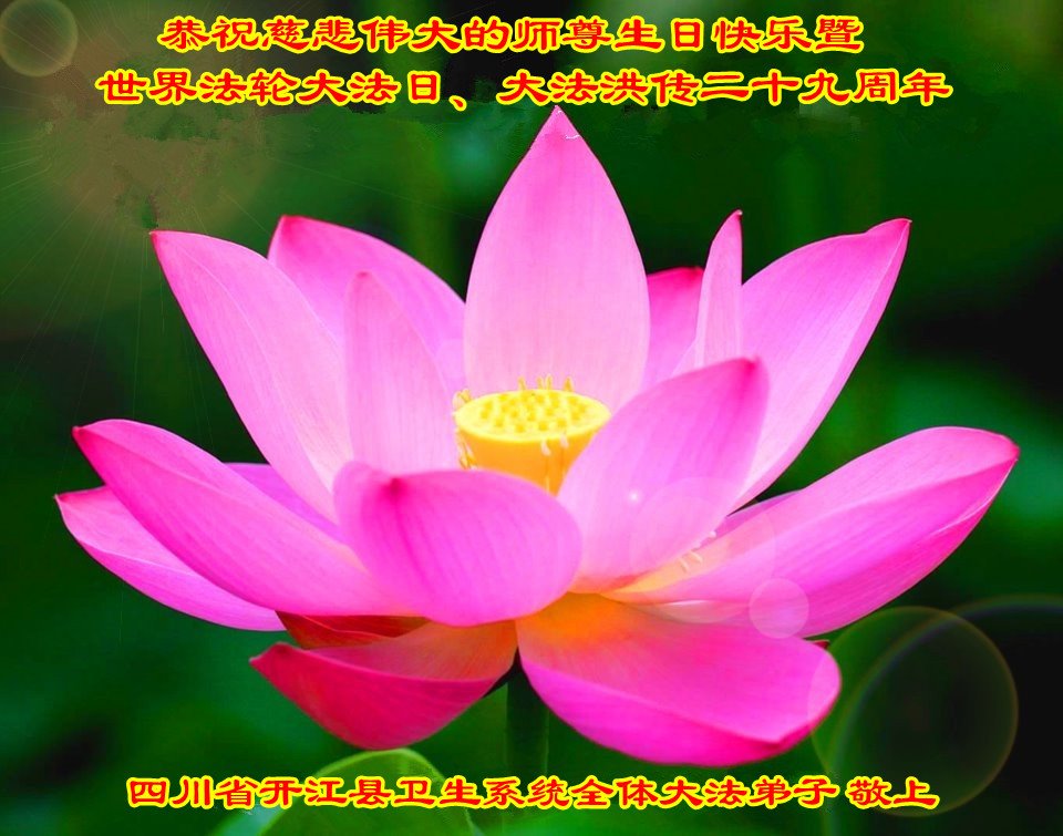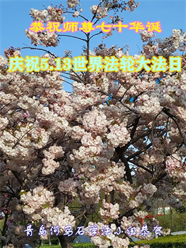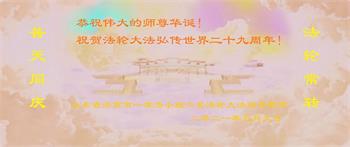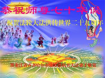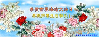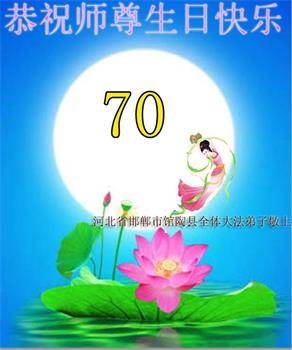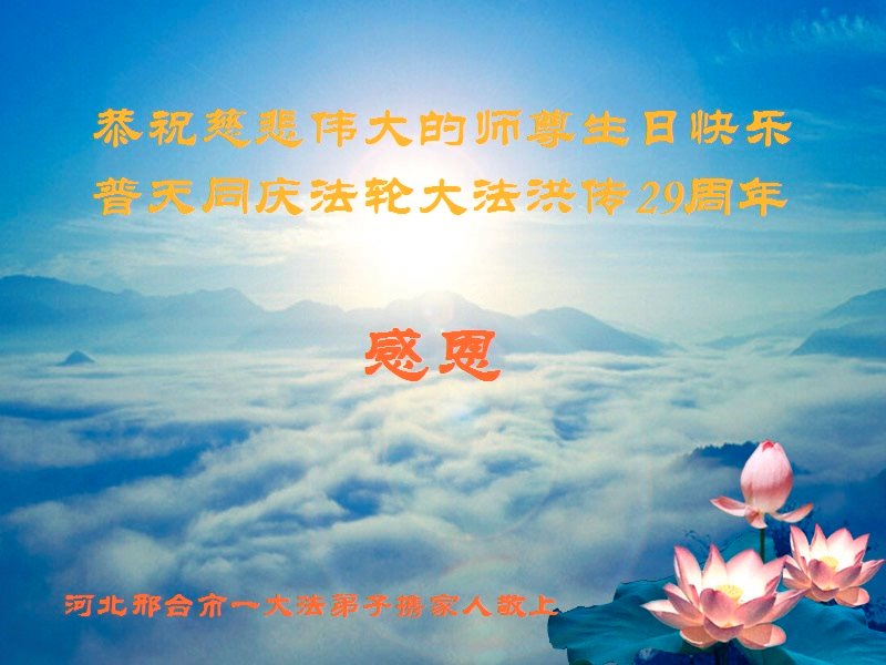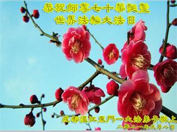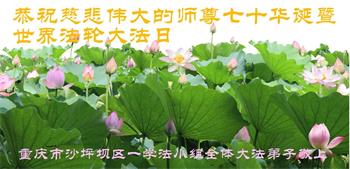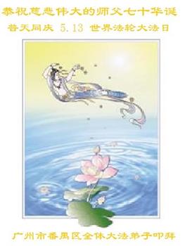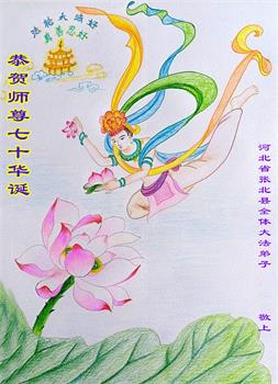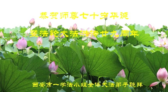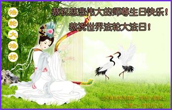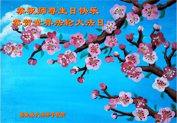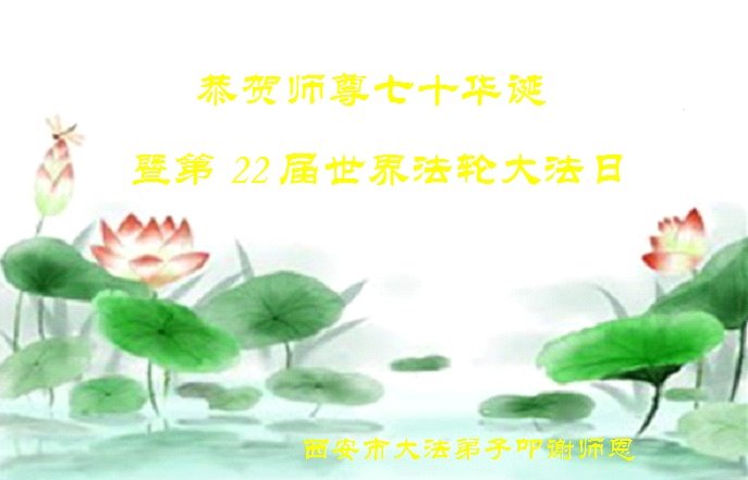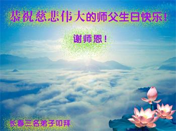 师尊好!师尊辛苦了!今年是伟大慈悲的师尊七十岁华诞,也是法轮大法日。在这普天同庆同颂的伟大光辉日子里,我们怀着无比感恩的心情,热泪泉涌,发自肺腑的一遍又一遍的颂唱着“法轮大法好”、“师恩颂”美好的歌曲,讴歌师尊威德无量、法力无边、叩谢师尊的慈悲苦度!