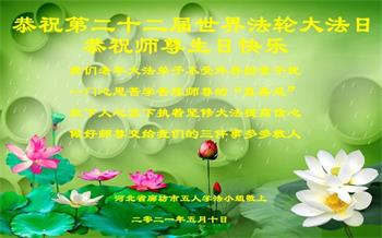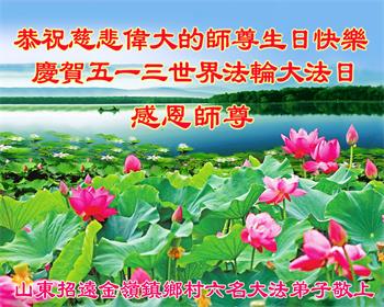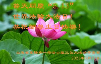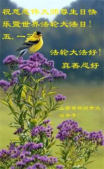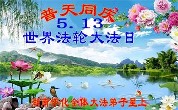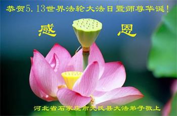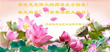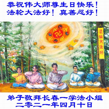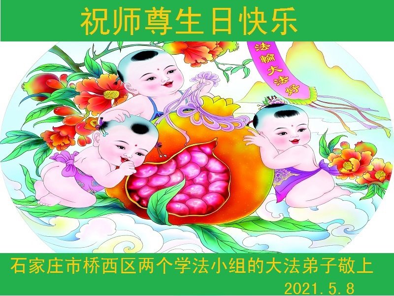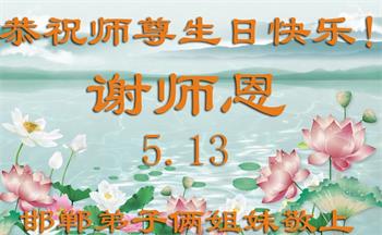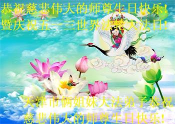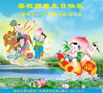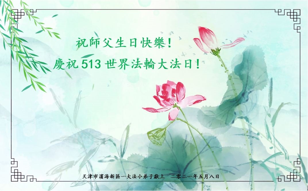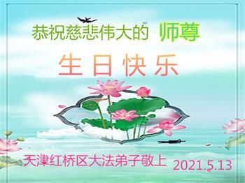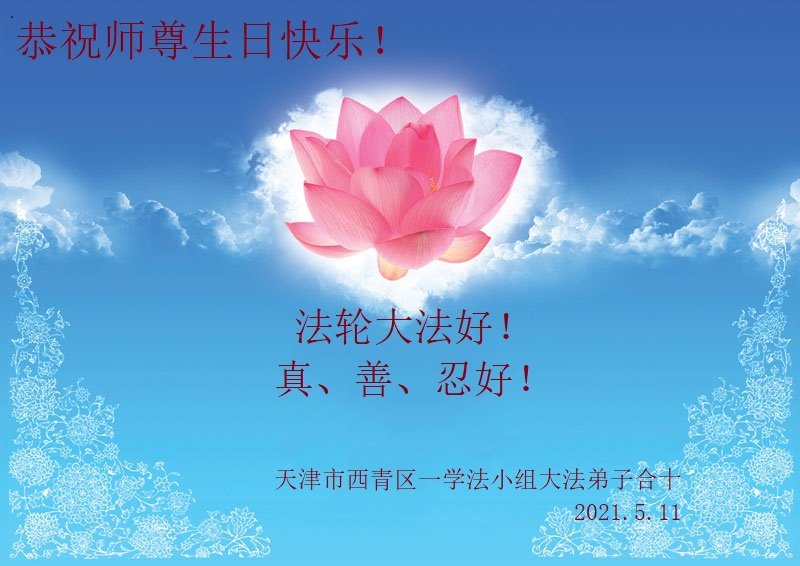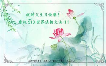 5月13日,是法轮大法日也是师父的生日,我们天津市西青区学法小组六位大法弟子,恭祝师父生日快乐!我们会自始至终做好师父交代的三件事,不忘自己的使命,责任,在学好法,发好正念的基础上,讲清真相多救人,圆圆满满的跟师父回家。