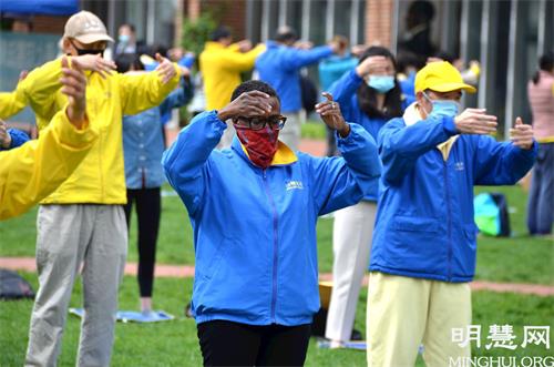 法轮功学员的集会吸引了众多游客了解法轮功真相。来自宾州Lackawaxen的Amanda说,她很悲哀中国人在他们自己的国家不能自由地拥有信仰。她觉得法轮功功法很优美,“我在这里感到了平和的能量,一种非常祥和的能量。”