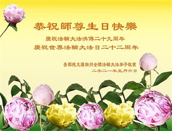美国德克萨斯州全体法轮大法弟子恭祝师尊生日快乐!恭贺法轮大法洪传二十九周年暨世界法轮大法日二十二周年!美国德克萨斯......
