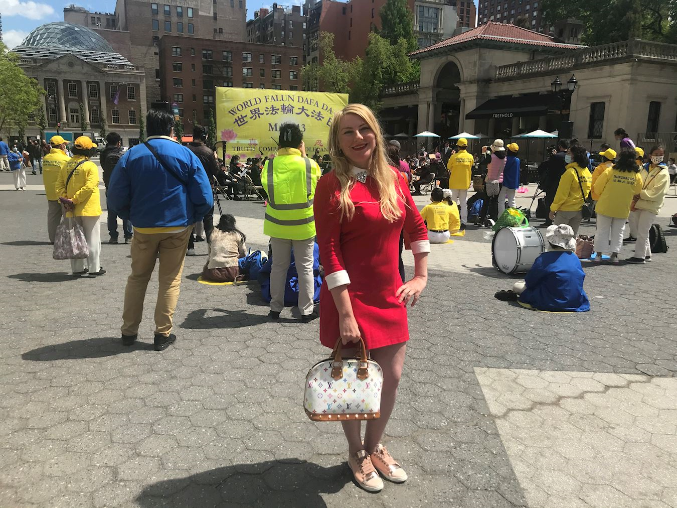 纽约会计师塔田娜(Tatiana Pishchulina)也是第一次参加联合广场的庆祝活动,感受到法轮功学员的喜悦心情,她感觉“黑暗时代过去了”,“春天终于到来了。纽约人又恢复了对生命的庆祝,又恢复了音乐和演唱会。”