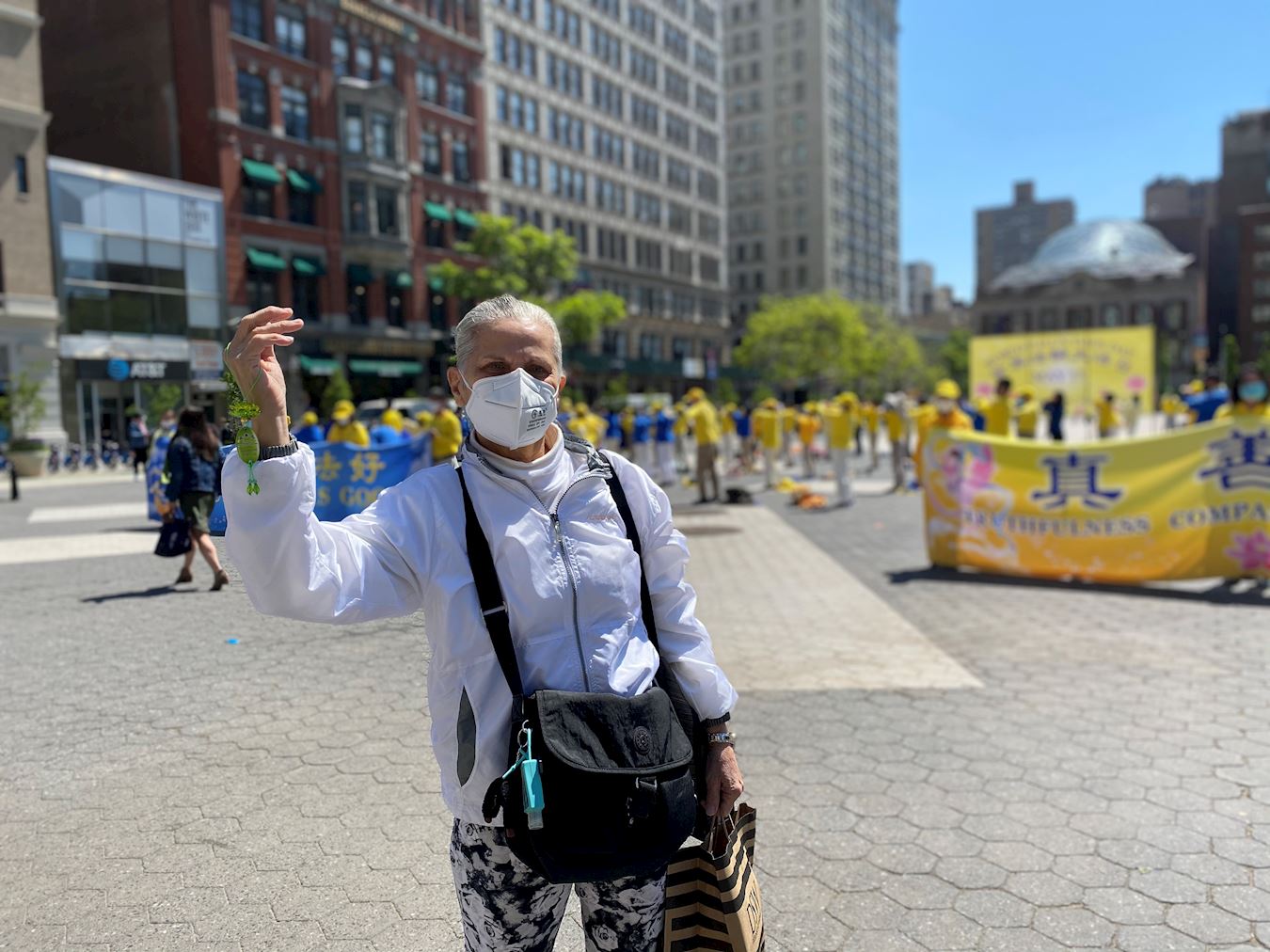 住在广场附近的纽约市政府退休官员杰瑞(Jary)原籍是委内瑞拉人,他说,人人都知道“共产主义是邪恶的”,他欢迎法轮功回到联合广场。他并说:“真、善、忍是全世界都需要的价值观,如果人们认同这三个字的话,这世界就是一个美好的地方了。”