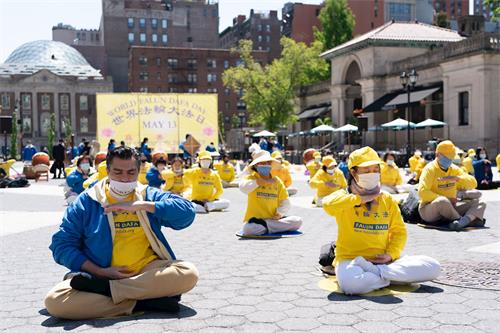 ![]() 图1:五月十一日,纽约部份法轮功学员在纽约市中心联合广场欢庆世界法轮大法日,纽约州政要褒奖法轮大法。 |