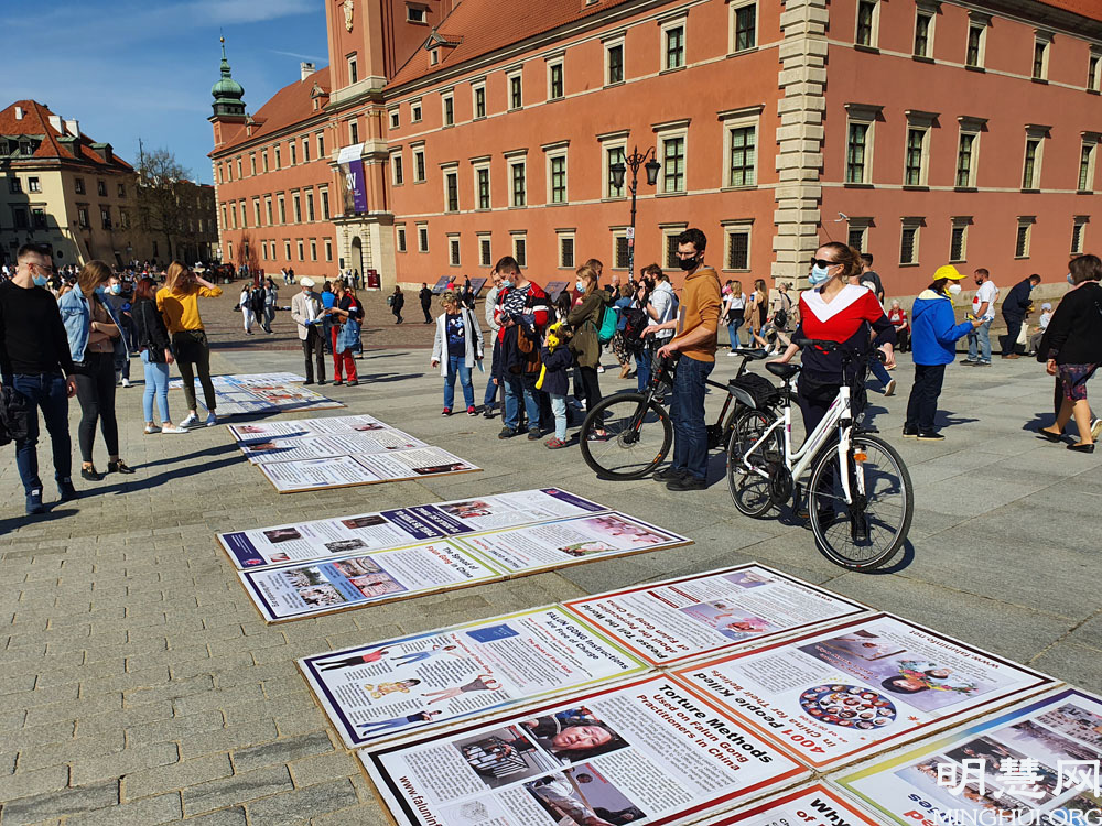 下午两点,法轮功学员来到华沙老城集体炼功并举办征签和讲真相活动,收到众多民众的响应和支持。