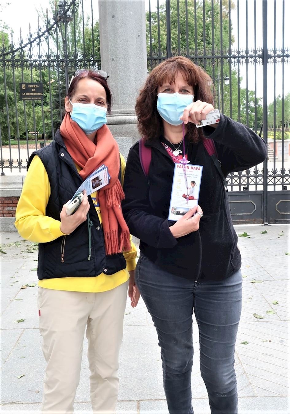 一对年轻夫妇和他们的孩子路过炼功点,女士对功法很有兴趣想要深入了解,她说她知道一些中共的暴行,但是对法轮功被迫害却一无所知。在了解真相后,她表示一定会把真相分享给自己的亲朋好友。临走之前,女士和法轮功学员合影以表示支持,并感谢法轮功学员们把法轮大法的美好带给了西班牙人民。