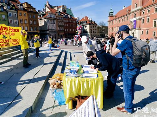 下午两点,法轮功学员来到华沙老城集体炼功并举办征签和讲真相活动,收到众多民众的响应和支持。