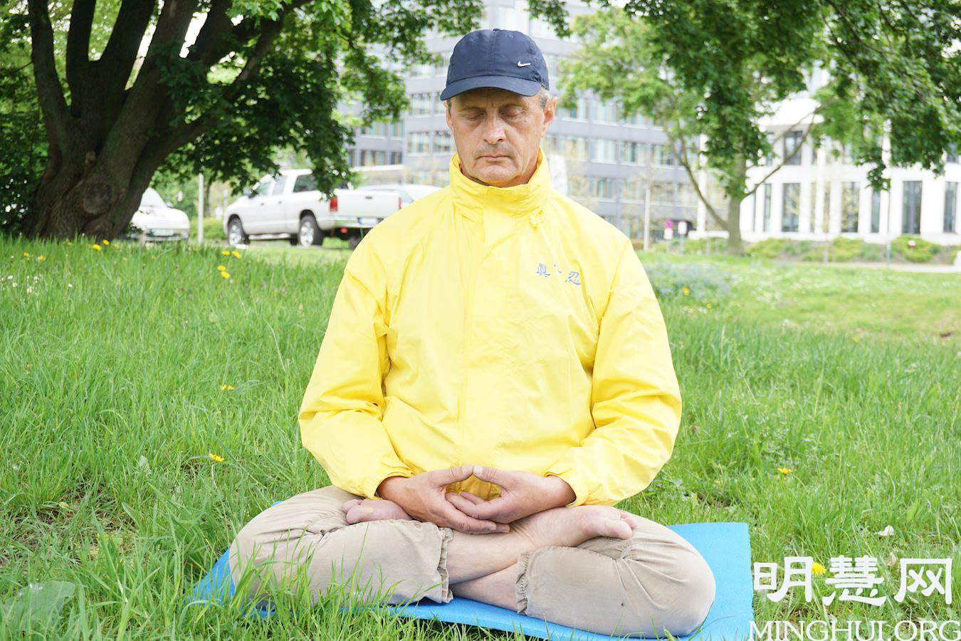 ![]() 图4:2021年5月13日,安德烈亚斯(Andreas S.)在庆祝法轮大法日活动中炼功。 |