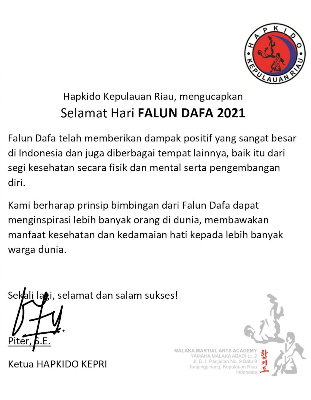 皮特S.E印尼廖内群岛合气道主席