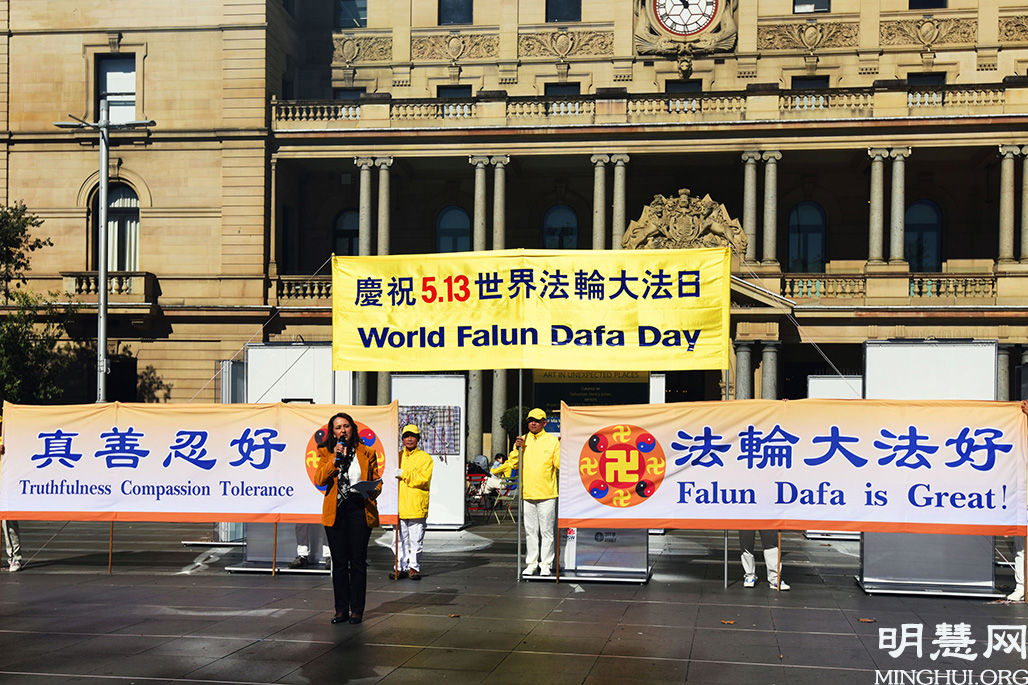 澳洲法轮大法学会会长赵博士(Dr Lucy Zhao)向与会者介绍了法轮大法二十九年前在中国洪传的盛况、无辜遭受中共迫害、如今在全世界和悉尼广传。她表示:“法轮大法超越了文化的界限,使上亿修炼人受益,为建立一个更健康、更和谐的社会做出了贡献。法轮大法在中国迅速洪传,体现了中国传统智慧的复兴;帮助了中国人重建与神传文化的联系。”