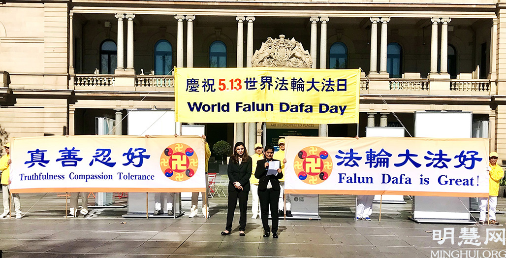 悉尼民间最大社团之一的悉尼社区集团主席因杜·哈里克里希纳 (Indu Harikrishna)在发言中表示:“我非常荣幸能代表悉尼社区集团支持法轮功学员一起庆祝‘世界法轮大法日’。”