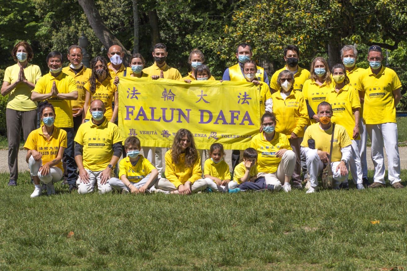 图1:意大利托斯卡纳的法轮功学员们庆祝五一三世界法轮大法日,暨法轮大法弘传二十九周年,并恭贺师尊七十华诞。
