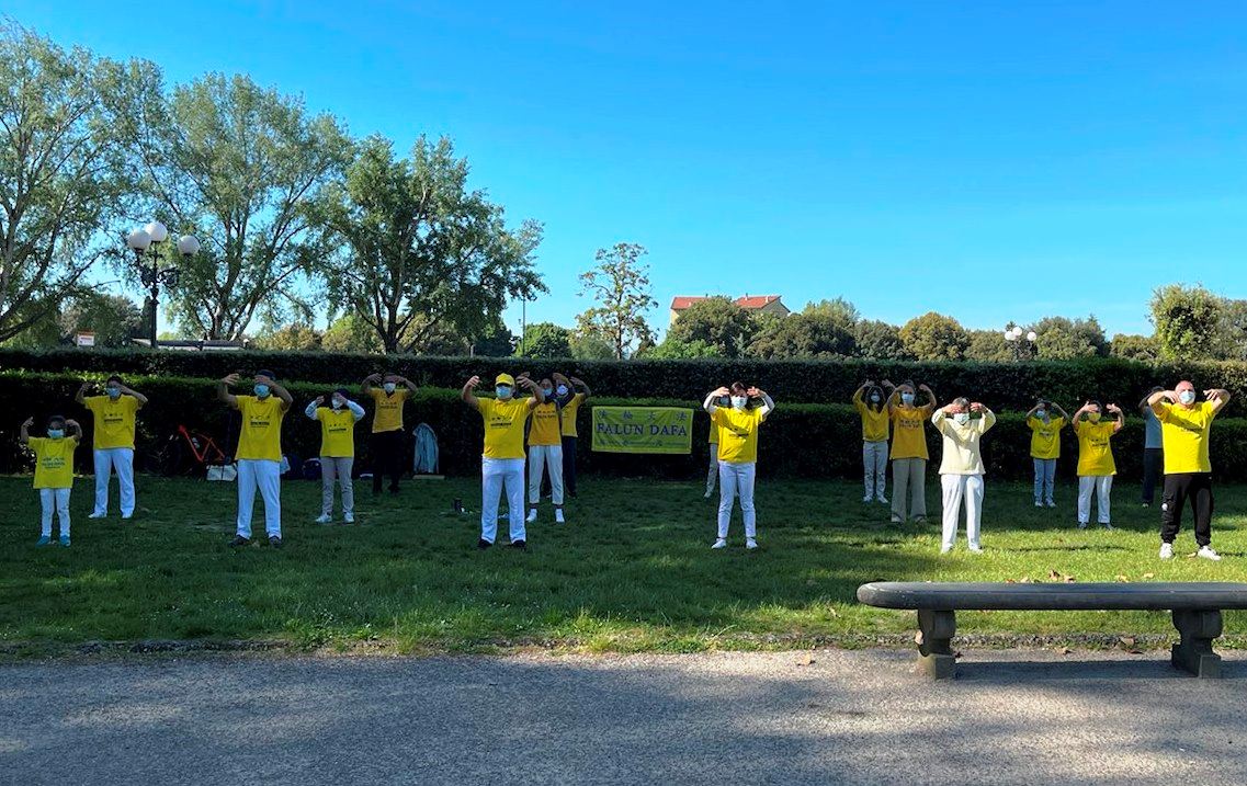 图2:法轮功学员在佛罗伦萨市的城市公园集体炼功。