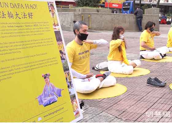 巴西法轮功学员在圣保罗市举办花车游行、功法演示、以及真相图片展等活动,庆祝世界大法日,同时传播法轮功的真相。