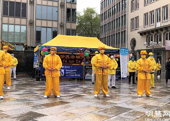 德国北威州法轮功学员们于五月十三日和十五日分别在杜塞尔多夫市中心公园和科隆大教堂前举行活动庆祝世界法轮大法日。