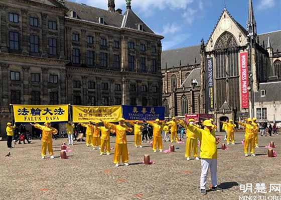 2021年5月13日是法轮大法洪传世界29周年,荷兰法轮功学员在首都阿姆斯特丹的达姆广场举行庆祝活动。