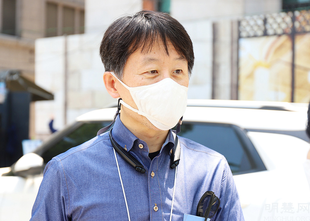 在建筑行业工作的尹泰雄(音)先生看到炼功场面后说,“我知道法轮功是以修养个人心灵为目的的运动,所以对自己对社会来说都是有好处的事情,所以衷心希望你们不要失去勇气,继续努力。”