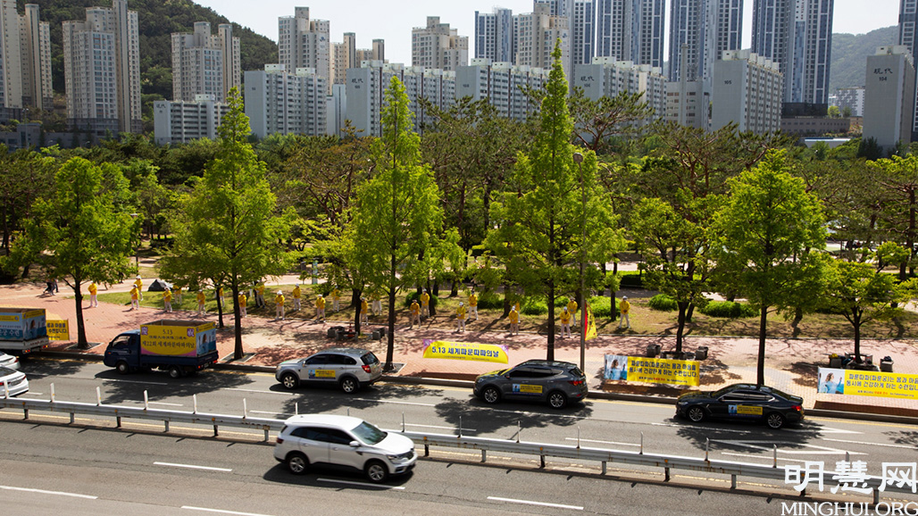 釜山法轮功学员庆祝法轮大法日